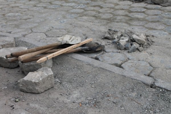 Ремонтники працюють над облаштуванням під'їзду до зупинок громадського транспорту, міняючи бруківку, - інформує Під прицілом.