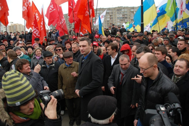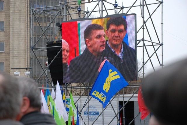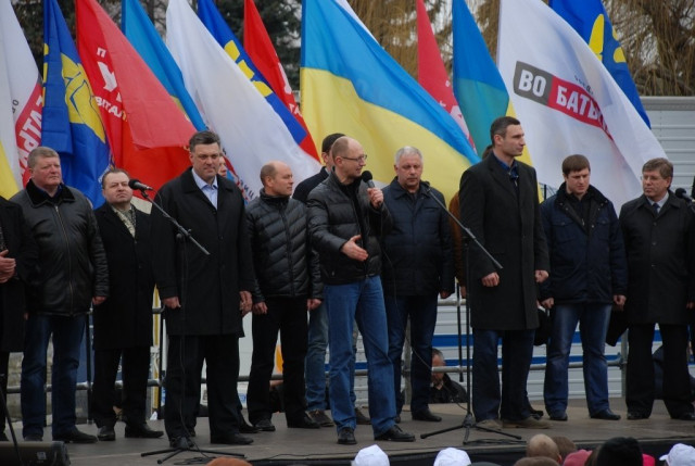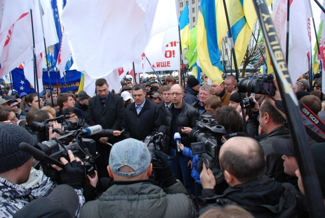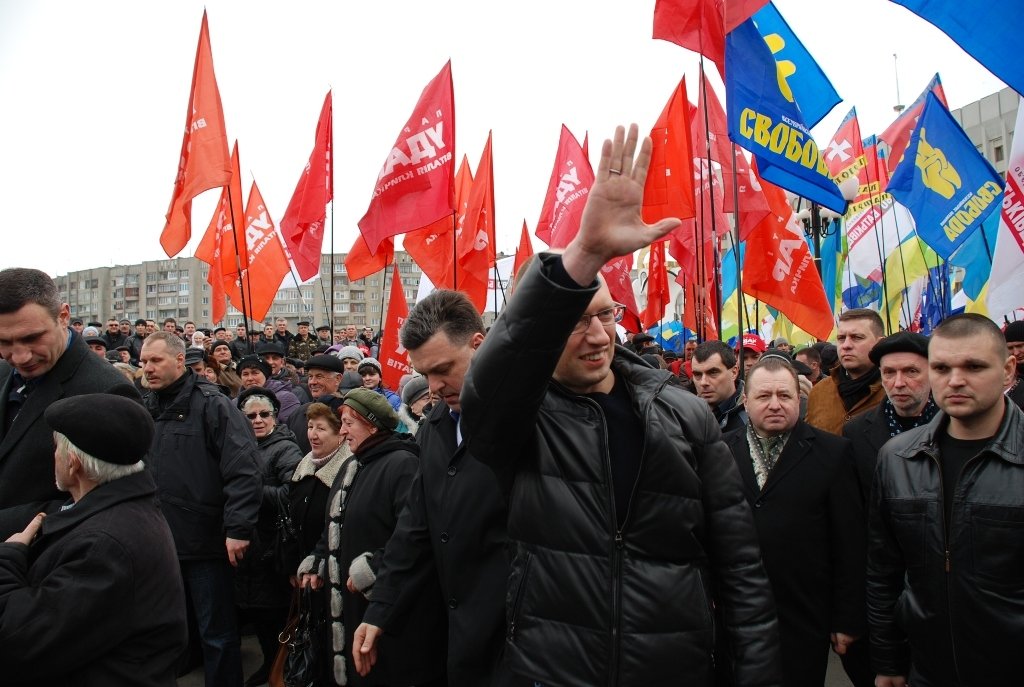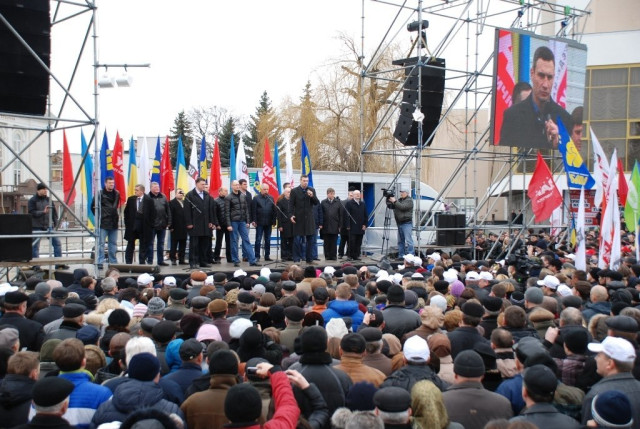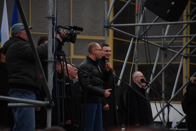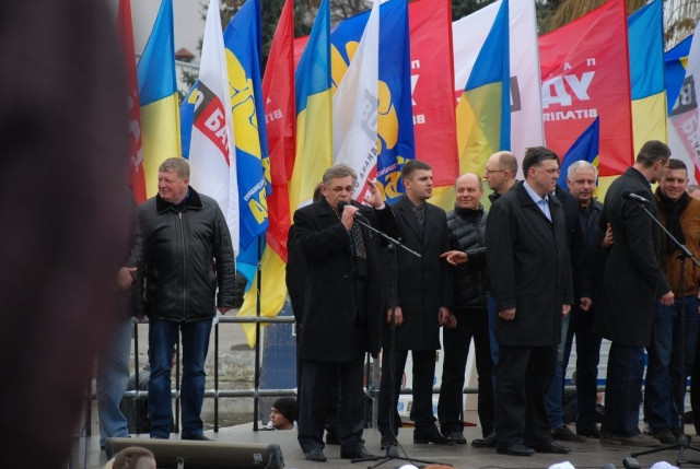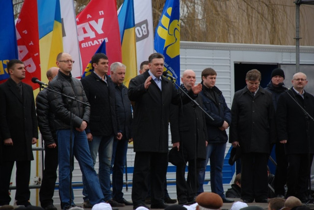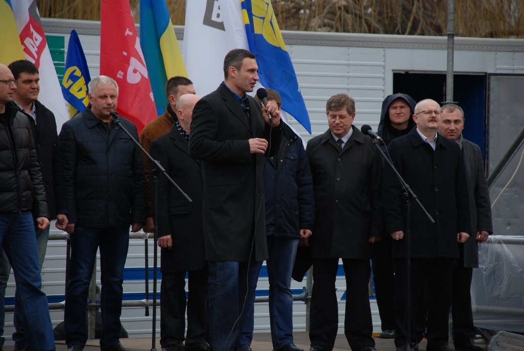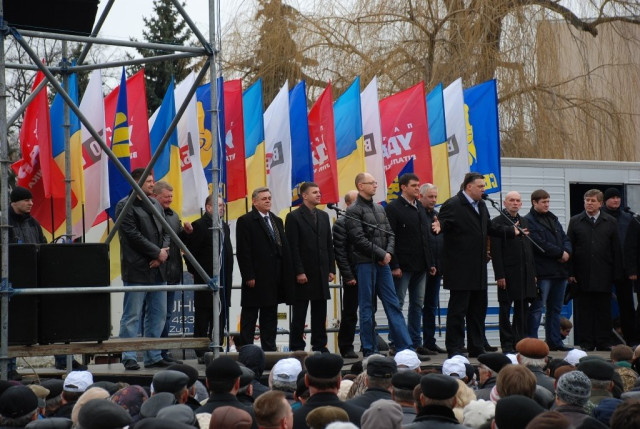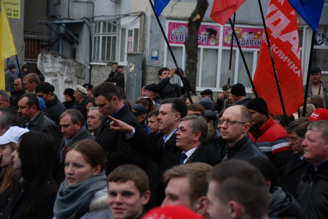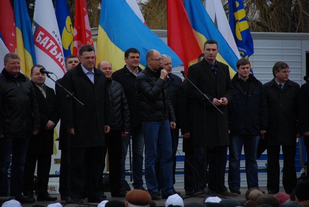 жалюгідне дійство, багато розумних заключень у коментах вище. кличко, тягнибок, яценюк і... біля них зі спитими обличчями "місцева активна еліта". про що тут говорити... яка революція??? хто її тут готувати буде???