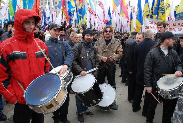 Блін - революціонери!:) А працювати хто буде? Наглядний приклад - дармоїди і ля-лякали на Київському майдані збираються, а поруч люди асфальт укладають, дорогу ремонтують... це вам не бла-бла - "революціонери"!!!