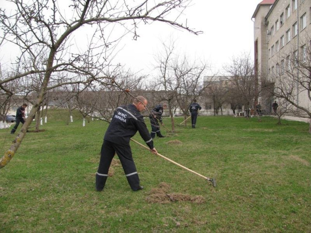 Жінки управління займались миттям вікон, а чоловіки – замітали територію, збирали сухе листя, обкопували та білили дерева.