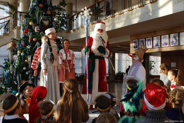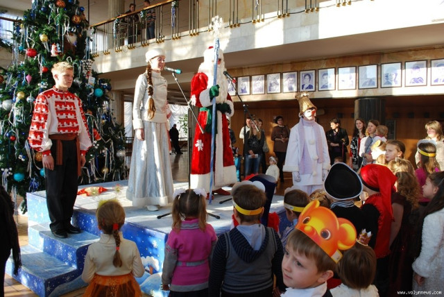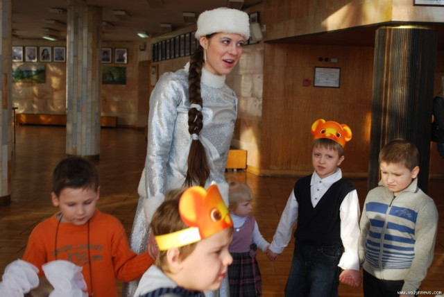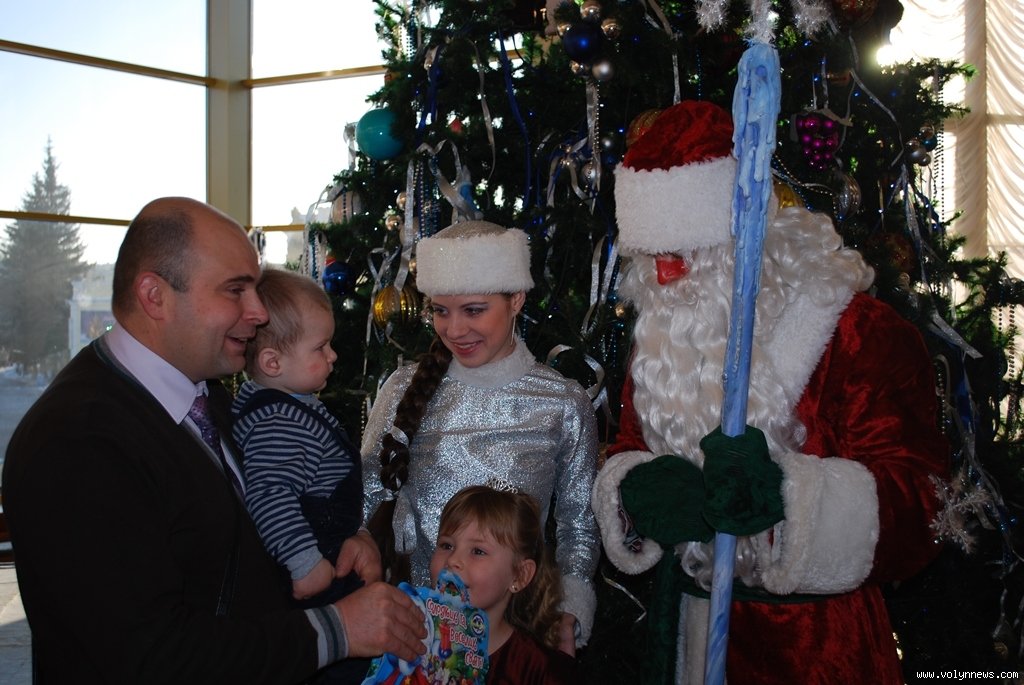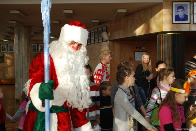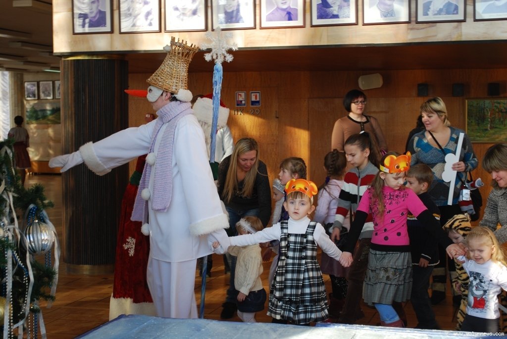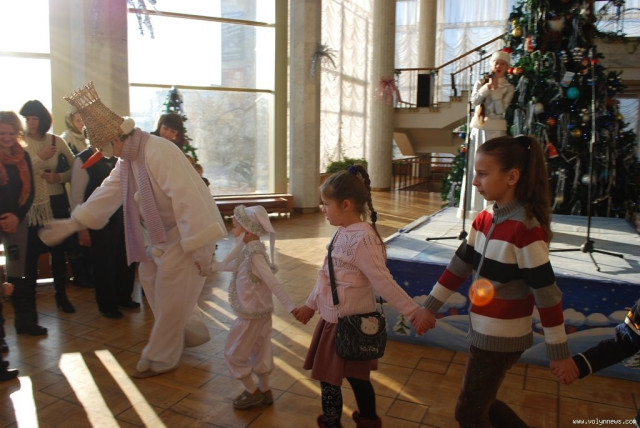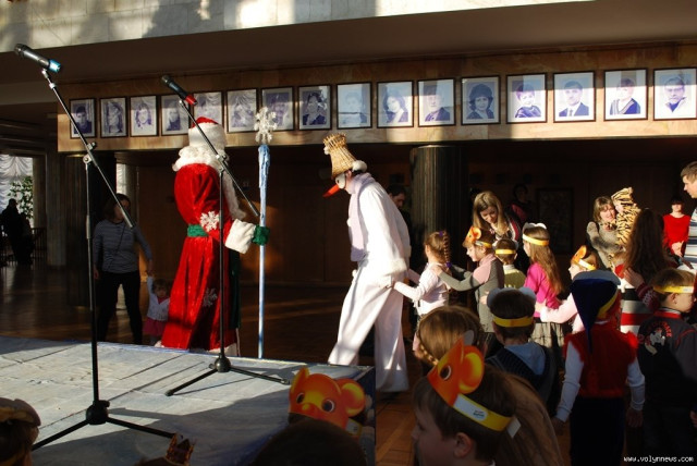 Волинські актори, переодягнені у Діда Мороза, Снігуроньку та інших казкових героїв, привітали малят із Новим роком та влаштували для них святкову виставу.