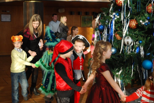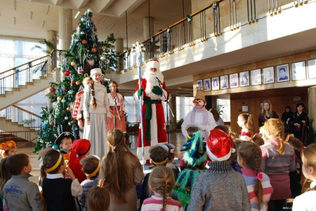 Разом із переодягненими у новорічних персонажів акторами театру дітки кружляли у хороводі навколо ялинки та грали в ігри.