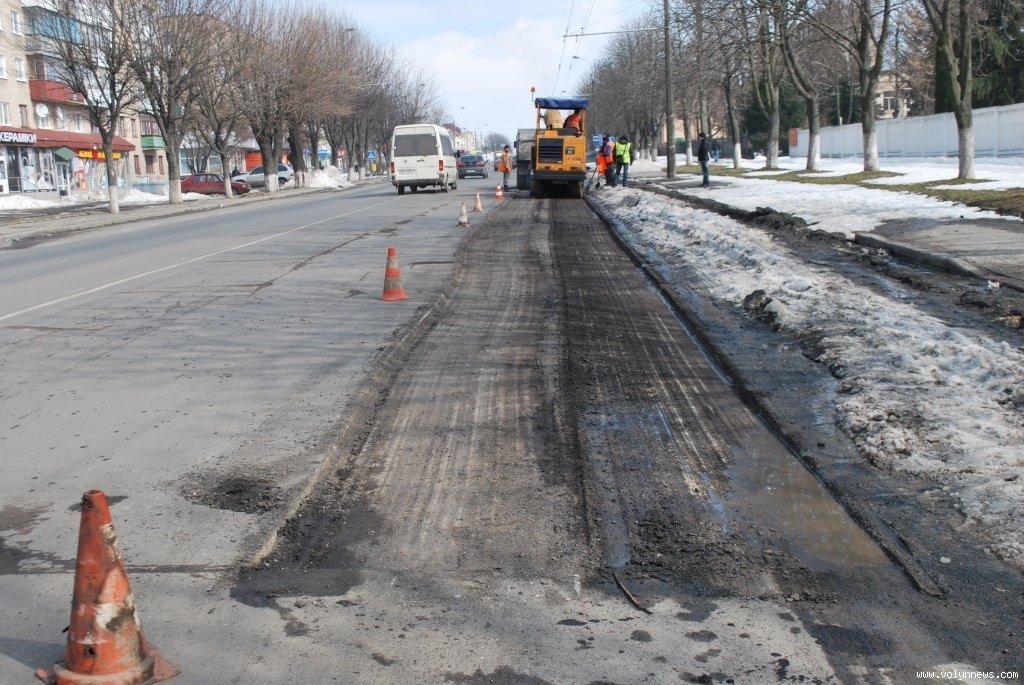 Так, як тільки зійшов сніг, дорожники вивели свою техніку на автошляхи Луцька. Зокрема працівники «Луцькавтодору», які готують асфальт до ремонту на вулиці Рівненській, кажуть, що вони приступили до роботи, власне, сьогодні 2 квітня. Але сподіваються, якщо будуть сприятливі погодні умови, то за 3-4 дні підготують повністю вулицю до укладки асфальту.