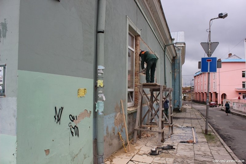 Ремонт лялькового театру у Луцьку почали зі стяжки фасаду приміщення та перекриття покрівлі.