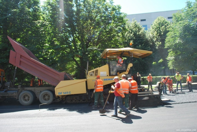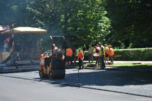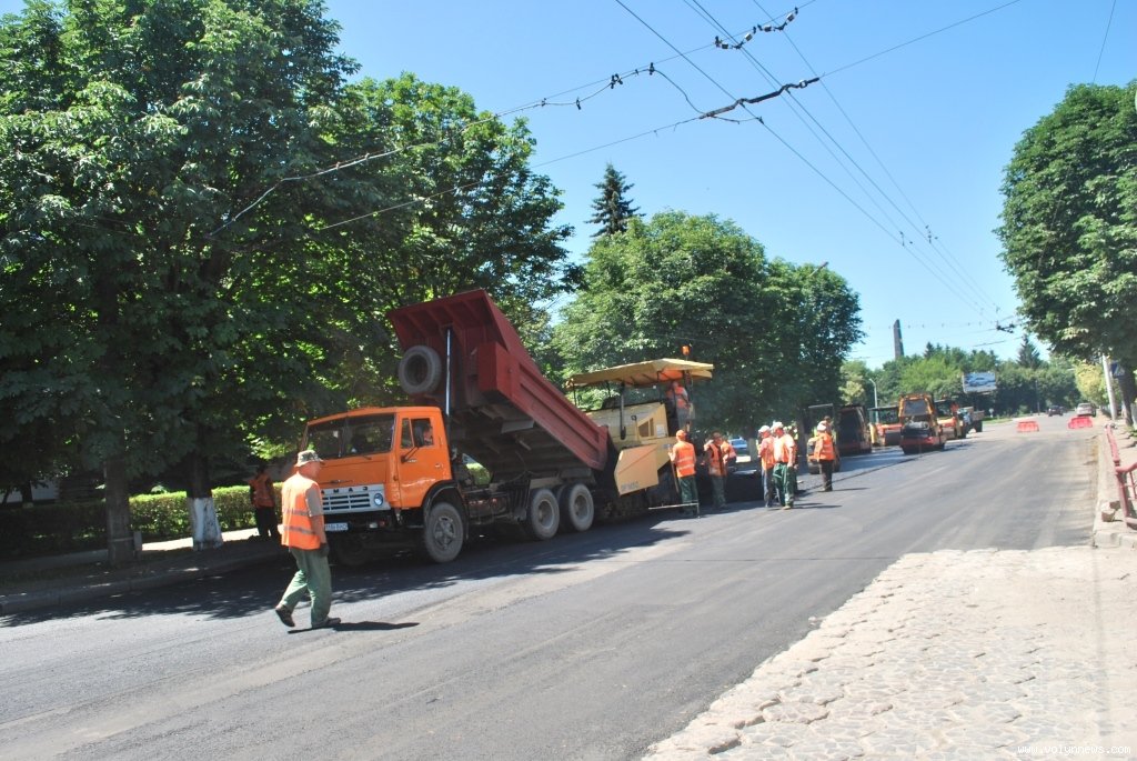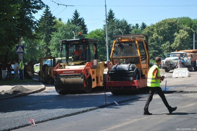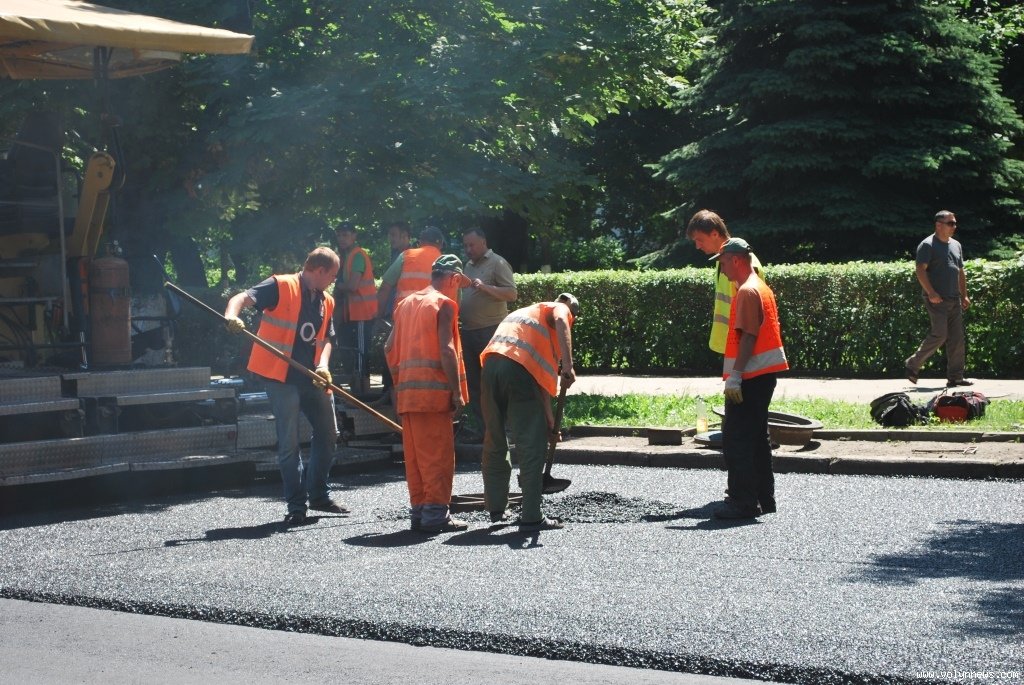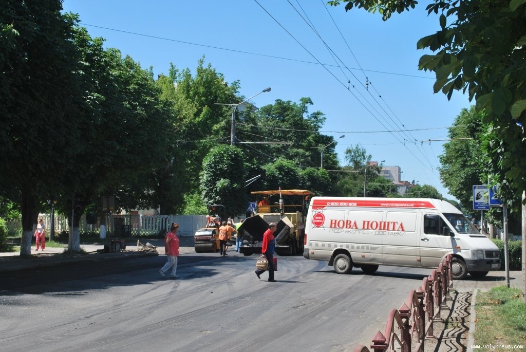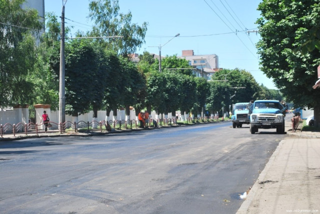На відрізках вулиці поблизу будівлі історичного факультету СНУ та поблизу спеціалізованої школи №5 сьогодні, 19 червня, о 12:30 робітники вкладали новий асфальт.
