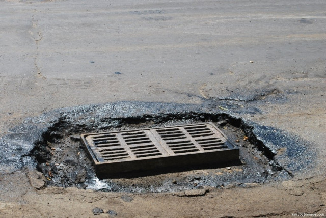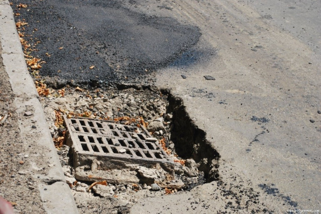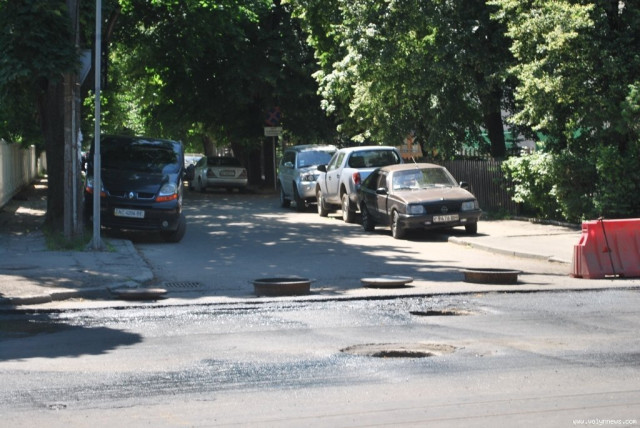 Вздовж вулиці зняли більшість каналізаційних люків та зливоприймальних решіток.
