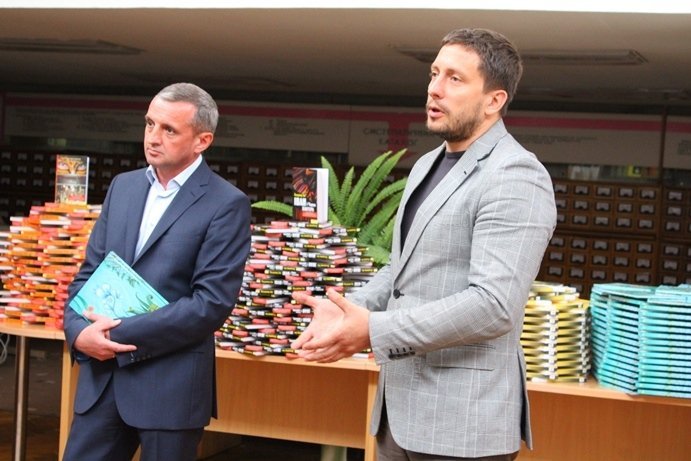 Книги, закуплені для бібліотечного фонду за кошти обласної адміністрації, урочисто передали заступник голови Волинської обласної державної адміністрації Олександр Курилюк, радник Президента України Володимир Зубанов та заступник голови Рівненської обласної державної адміністрації Олексій Губанов 23 травня під час візиту до Волинської обласної універсальної наукової бібліотеки імені Олени Пчілки.