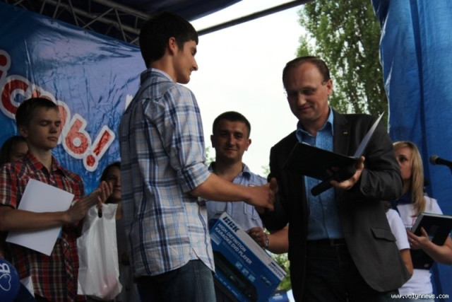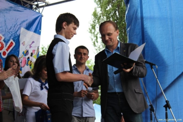 Переможець наукового змагу Андрій Савчук отримав електронну книгу. Схвильований юнак сказав, що його навчальний заклад – найкращий в Луцьку та подякував вчителям і батькам.