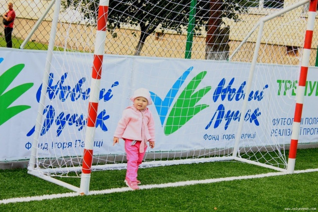 Маленька жителька мікрорайону Вересневе Поля - перевіряє новий футбольний майданчик біля школи № 16
