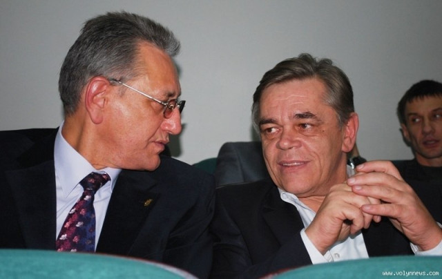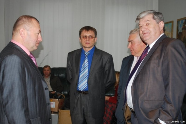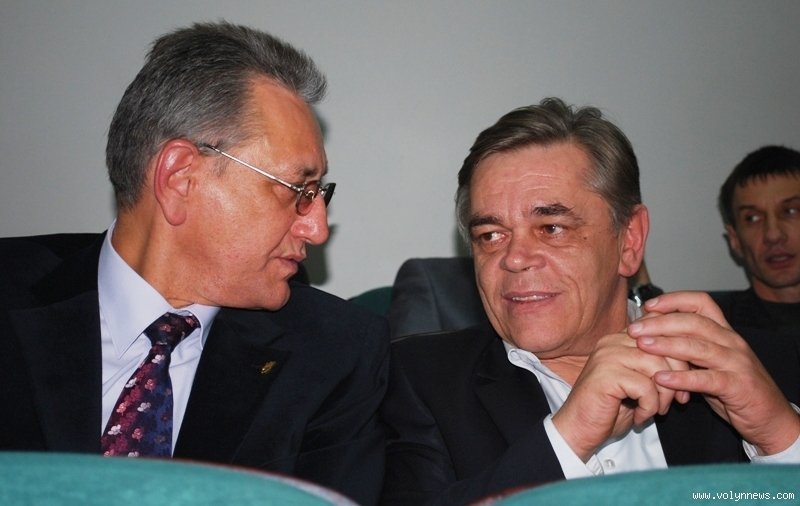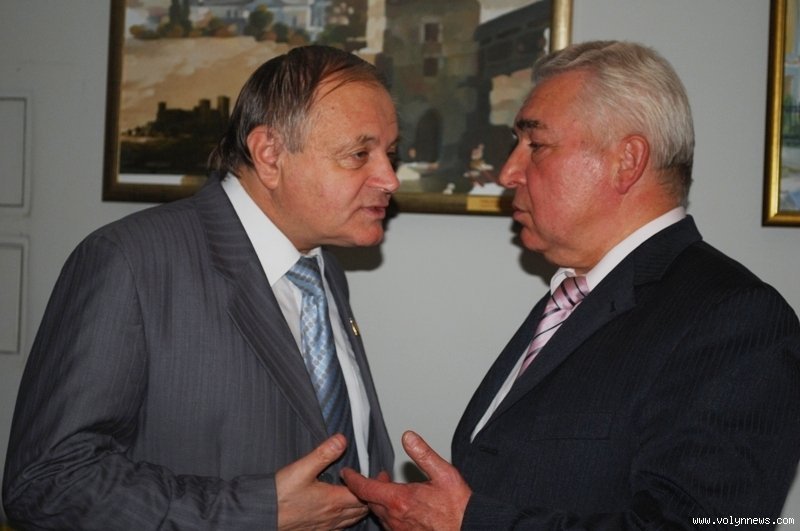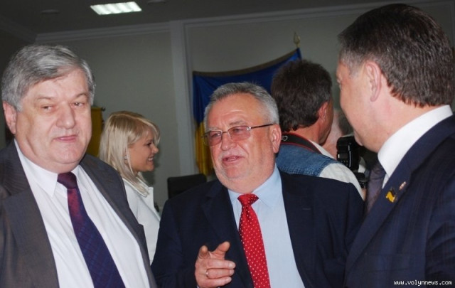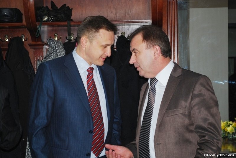Депутат попереднього і нинішнього скликань, «бютівець» Олександр Пилипович мило бесідував з керівником луцького міського осередку Партії регіонів Іваном Смоленгом.