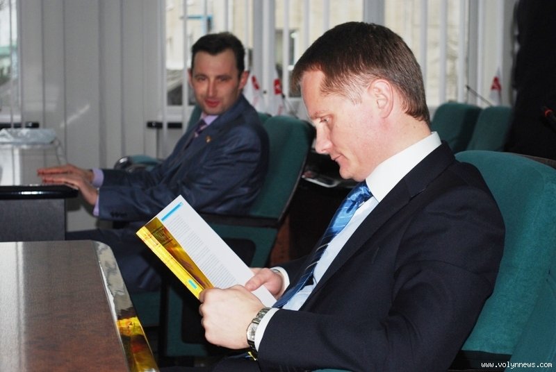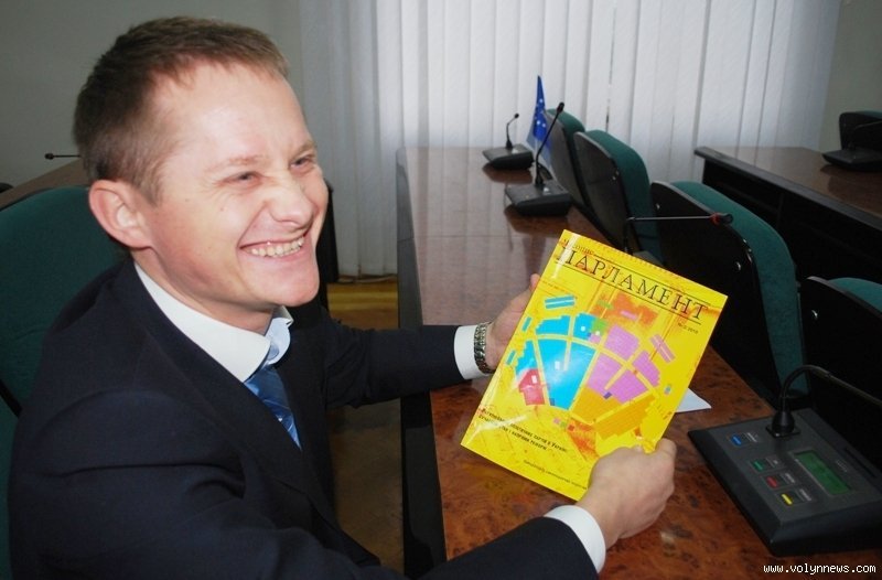 Одним з перших на урочистість прийшов «нашоукраїнець» Андрій Козюра, який вже вдруге отримав мандат у Луцькраді. Поки його колеги підтягувалися, Козюра часу не гаяв – листав тематичний журнал із «парламентською» назвою. Певно, натякав, що крісло депутата місцевої ради не вважає для себе вершиною кар"єри...