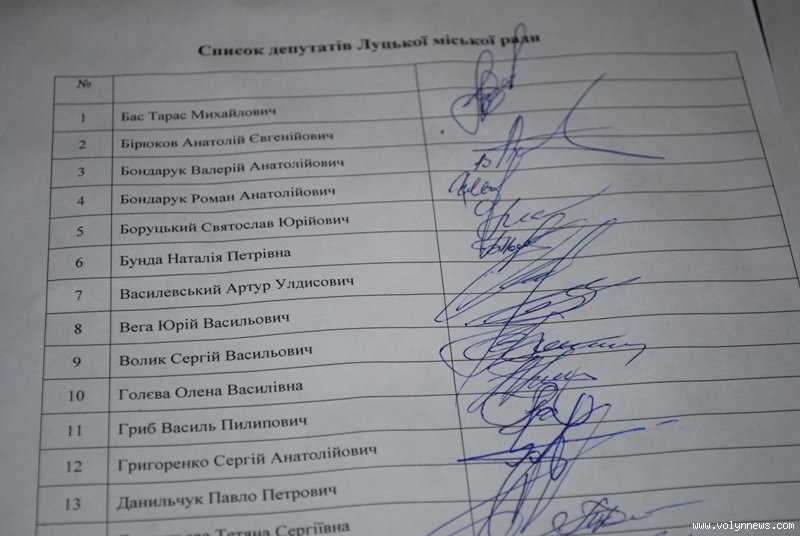 На першій сесії Луцької міськради шостого скликання 12 листопада у стінах мерії красувались усі 50 депутатів-новобранців.