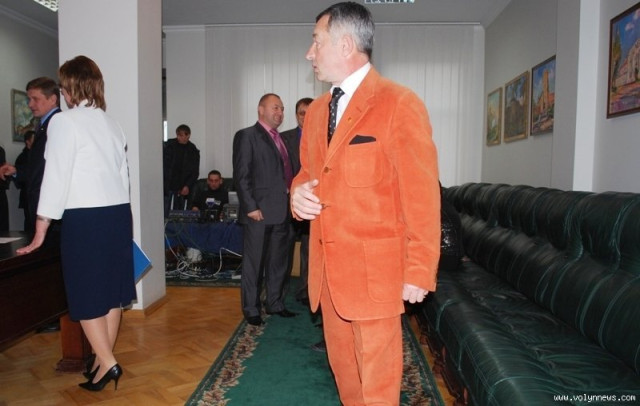 Фурором і приводом для перешіптуваль навіть у чоловічій частині депутатів стала яскрава поява депутата-мажоритарника від «Фронту Змін» Миколи Дендіберіна, який красувався поміж колегами у костюмі помаранчевого кольору. Поводив себе поважно і стримано.