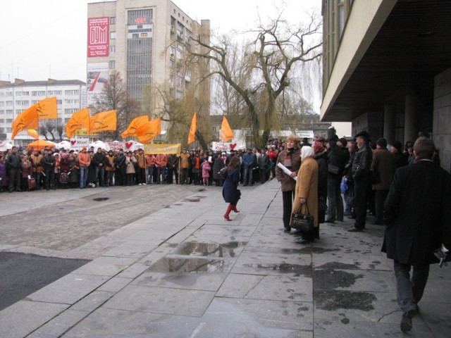 У приміщенні Волинського обласного академічного музично-драматичного театру імені Тараса Шевченка розпочалися урочисті заходи з відначення 70-ї річниці утворення Волинської області, на які прибув Президент Віктор Ющенко. Глава держави спізнився на зустріч в театр на півтори години. Досі поблизу театру на нього чекав натовп молодих активістів із помаранчевими стягами та плакатами «Волинь за Ющенка».