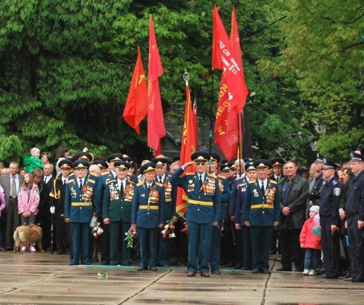 По завершенню мітингу-реквієму меморіалом пройшов парад ветеранів війни. Його супродовжували оплесками.