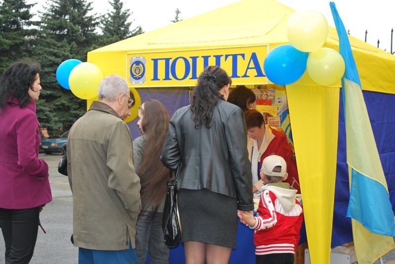 На події були присутні представники товариства Червоного хреста, які роздавали вітальні листівки. Водночас, Укрпошта навпроти стадіону поставила торгівельний намет. Там продавали листівки та конверти із зображеннями на тему Дня Перемоги.