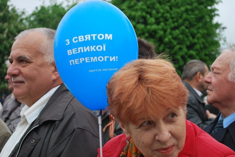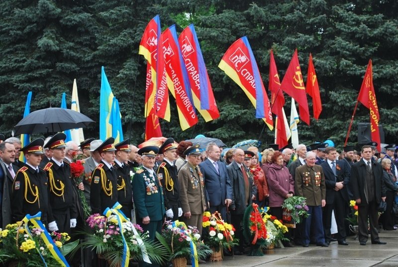 Не обійшлося на мітингу без політики: присутні тримали в руках стяги Ленінської комуністичної партії, Української народної партії та партії «Справедливість». Чимало присутніх були з синіми надувними кульками Партії регіонів.