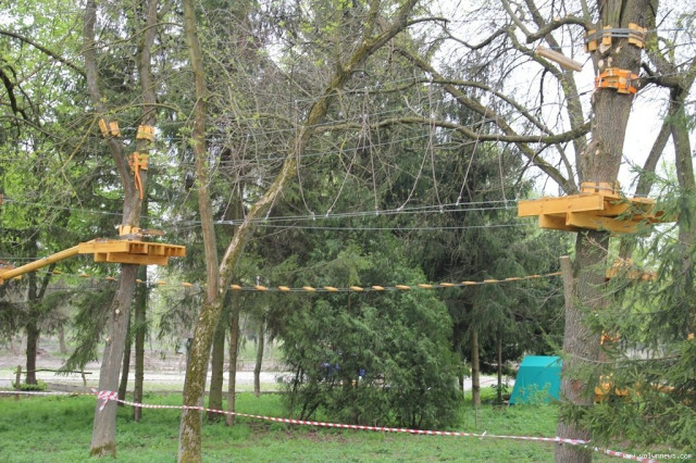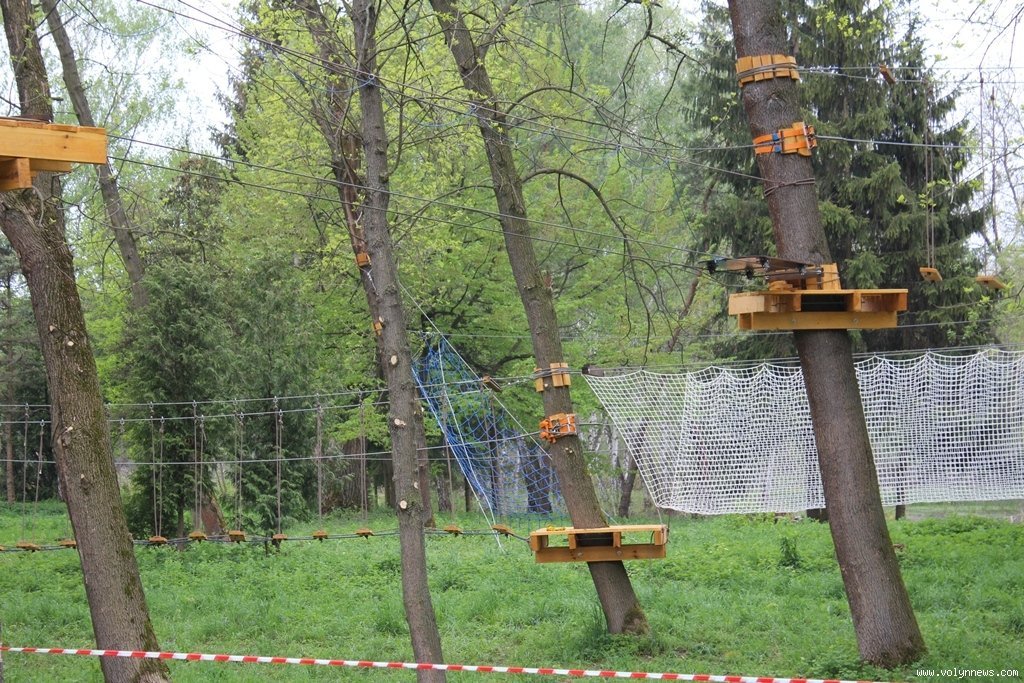 Туристично-екстремальний об’єкт розмістили поблизу «Пташиного гаю», що у центральному парку Луцька. Так, на різній висоті над землею на деревах уже встановили майданчики, між якими натягнули канатні доріжки, троси, підвісні мостики, шини та сітки.