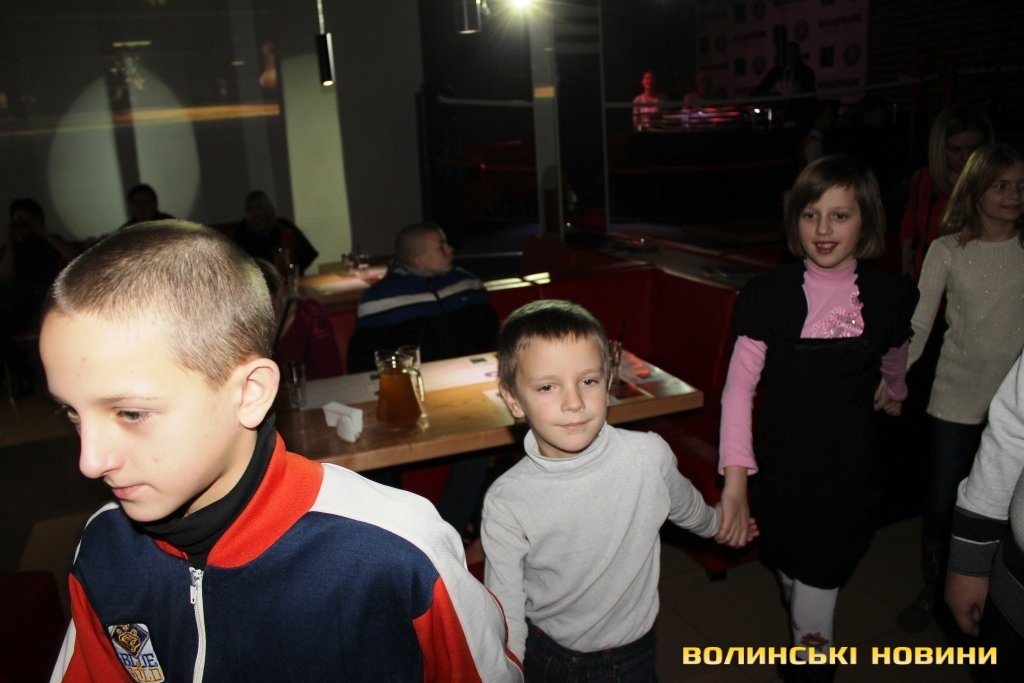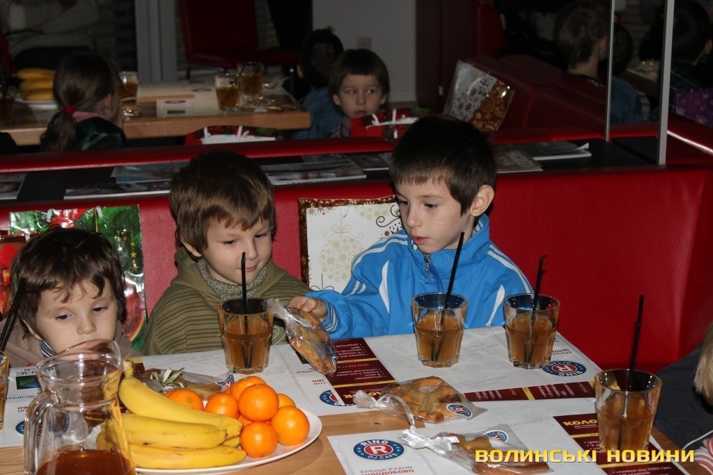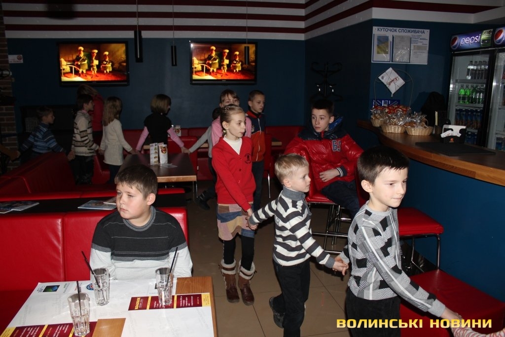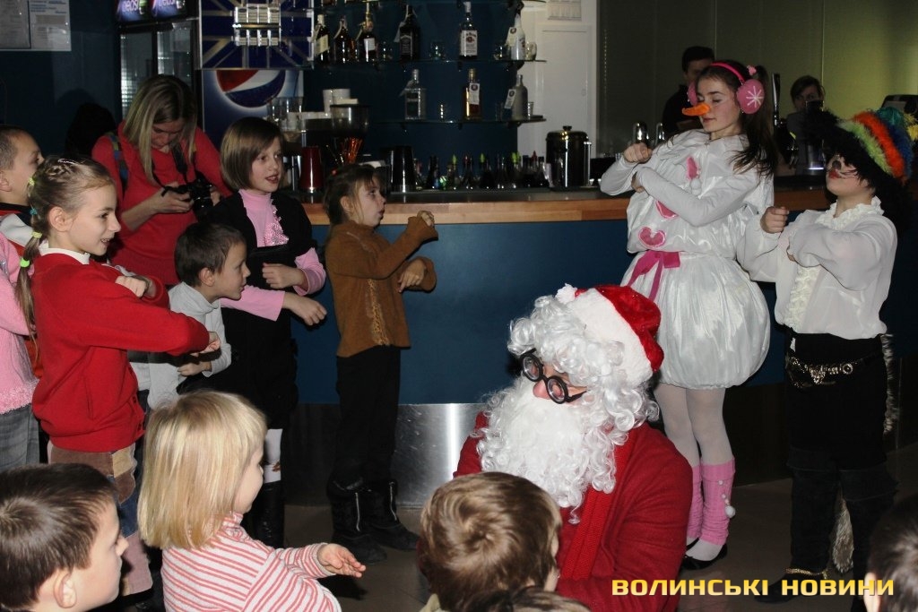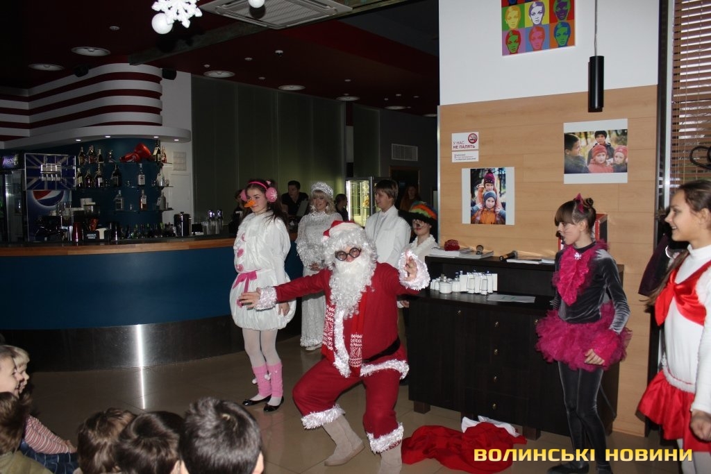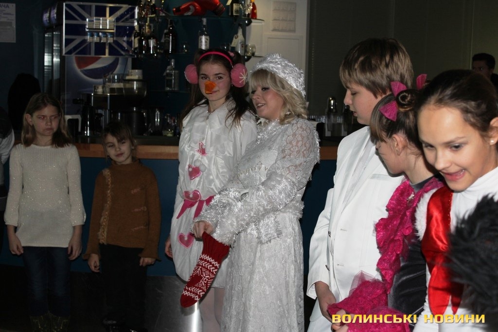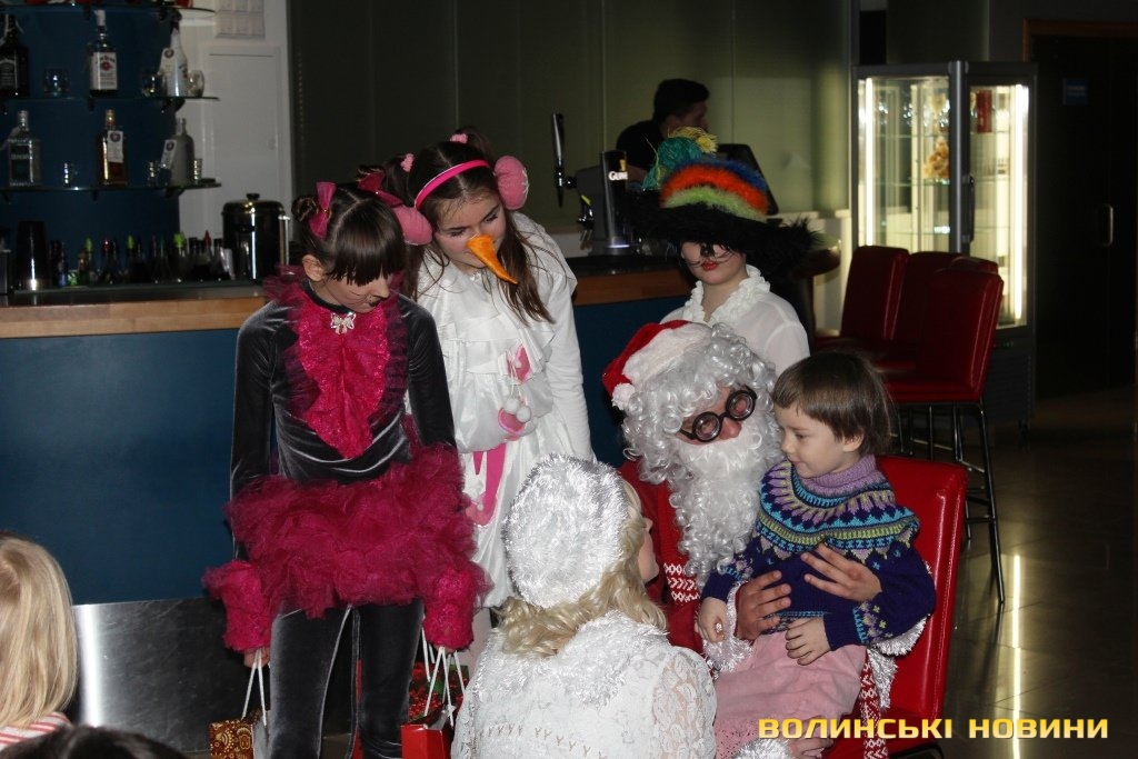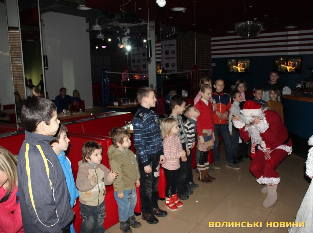 Свято для дітей із малозабезпечених сімей влаштували 1 січня у «RingDJCafe». Дітей, батьки яких нечасто мають можливість влаштувати для дитини свято вдома, вітали довгоочікувані новорічні казкові персонажі Дід Мороз та Снігуронька. Захід, який організувала Луцька міська рада, відбувся за фінансової підтримки підприємця Андрія Покровського.