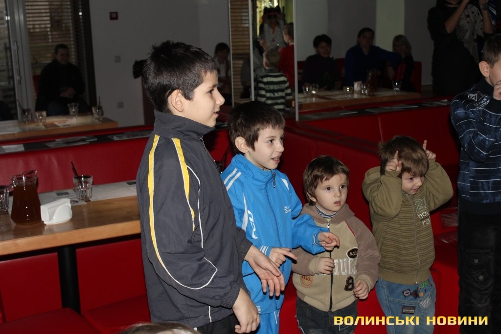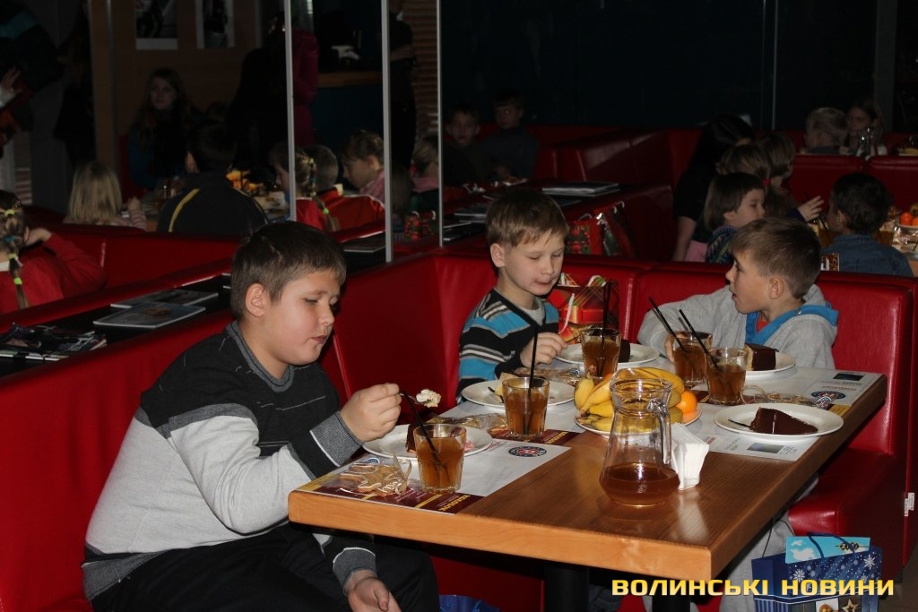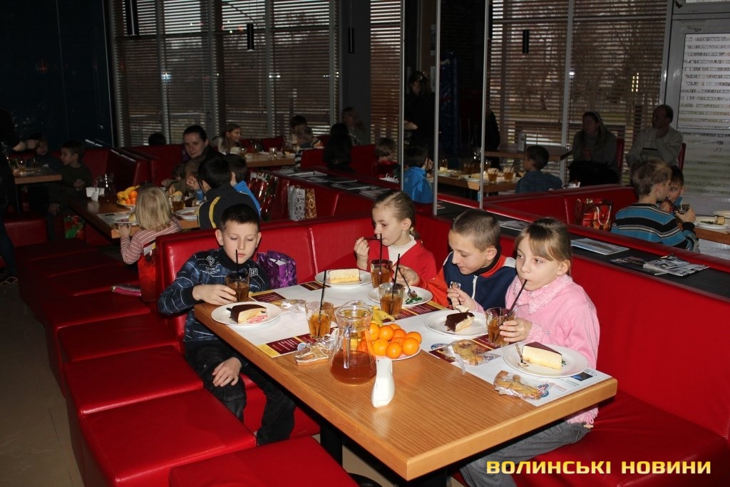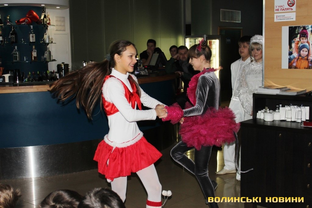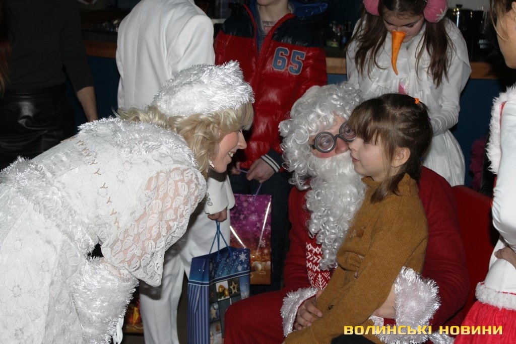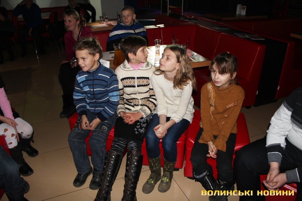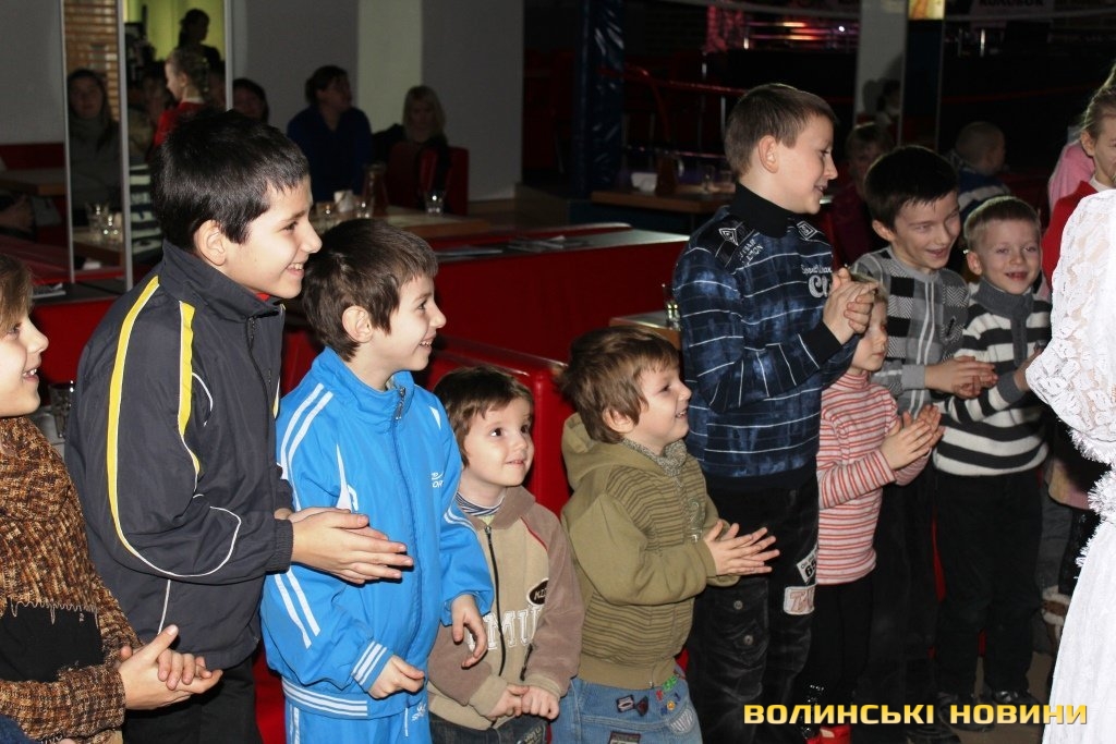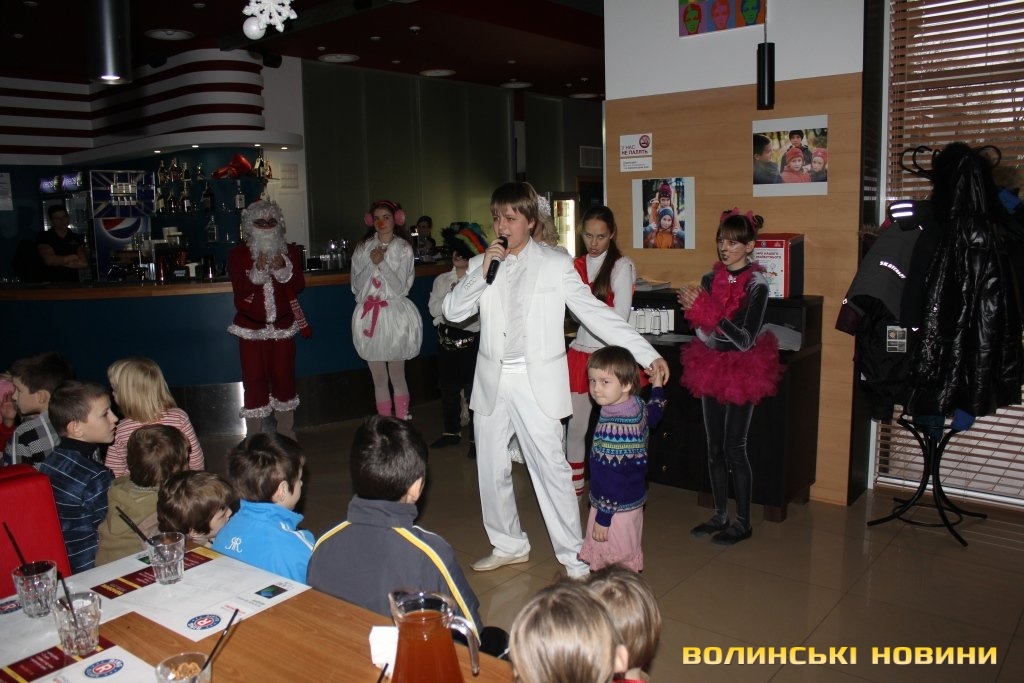 Свято для дітей із малозабезпечених сімей влаштували 1 січня у «RingDJCafe». Дітей, батьки яких нечасто мають можливість влаштувати для дитини свято вдома, вітали довгоочікувані новорічні казкові персонажі Дід Мороз та Снігуронька. Захід, який організувала Луцька міська рада, відбувся за фінансової підтримки підприємця Андрія Покровського.