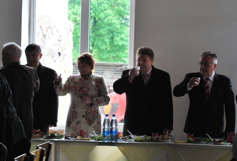 Поки начальники п’ють, колишній губернатор Микола Романюк та рядові посадовці стоять осторонь.