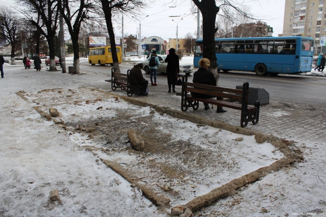 Від кіоска, який знаходився на зупинці громадського транспорту напроти колишнього кінотеатру «Промінь», 6 січня залишився лише своєрідний фундамент.