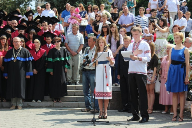 Випускники отримували дипломи з рук деканів факультетів та спеціальних гостей. У подарунок магістрам звучали пісні у виконанні студентів та випускників університету.