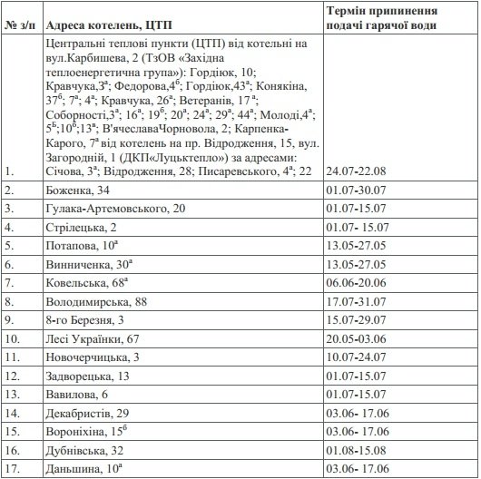 Коли у Луцьку відключать гарячу воду. ГРАФІК