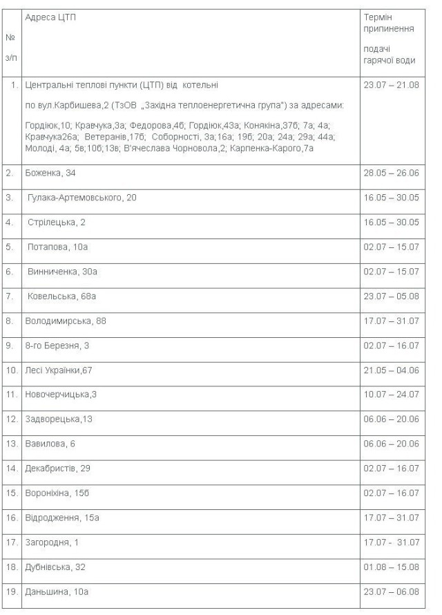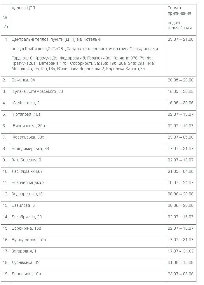 Графік графіком, а на 33-му відключили гарячу воду на 10 днів раніше, ніж тут написано.