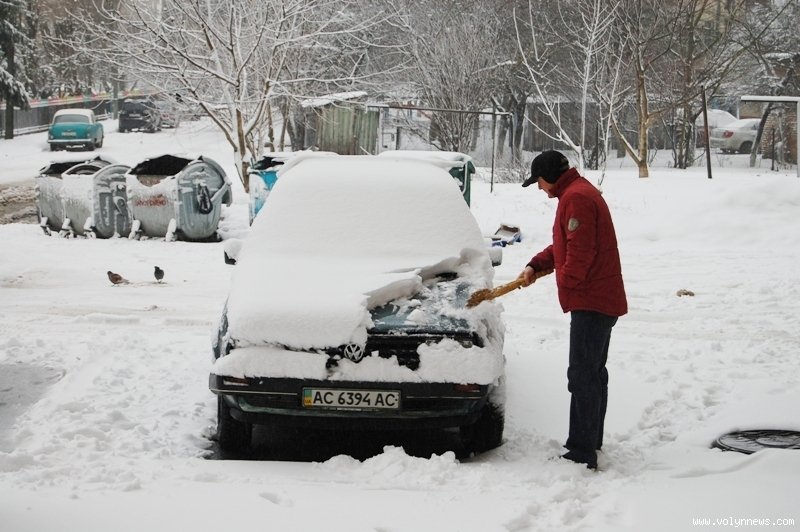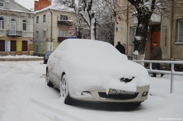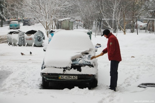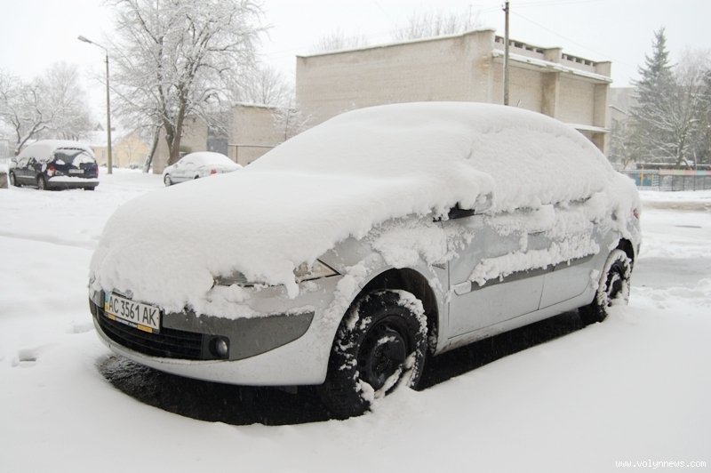 Автомобілі добряче замело. Ті автовласники, які залишають ночувати свої машини на вулиці, мають додатковий клопіт – свої автівки вони змушені відчищати від снігової ковдри хто як – віниками, руками, ганчірками.