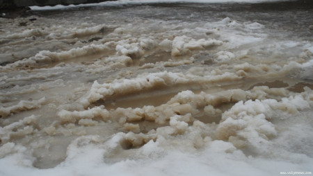 Попри спроби комунальників очистити дороги від снігу, у місті більшає кучугур і брудної снігової каші. Пішоходи змушені оминати сніжні горби, витоптуючи стежинки.