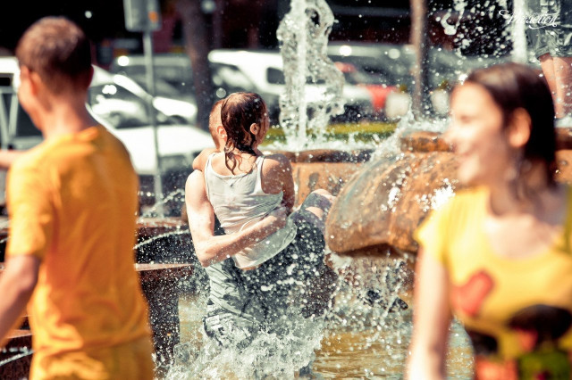 Луцька молодь втомилась від спеки. Розважитись, освіжитись і набратись позитивних емоцій вирішили юні представники міста. І, зауважимо, не просто так - а прямо в центрі Луцька у міському фонтані.
