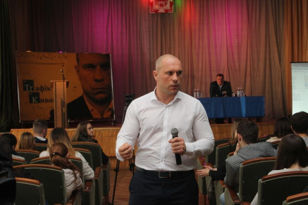 Епатажний очільник нещодавно реформованої структури, який брав активну участь в бойових діях на сході, відомий в Україні своєю відкритою манерою спілкування. Розпочав зустріч правоохоронець з того, що розповів майбутнім юристам про кредит довіри населення до поліції. Мовляв, правоохоронці повинні відчувати довіру та підтримку населення. Відтак, працюватимуть ефективніше і відкритіше.