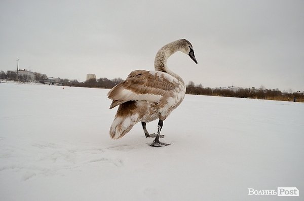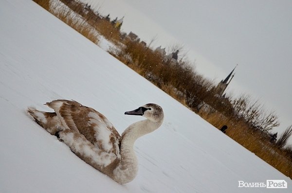 На замерзлому руслі річки Стир, поблизу заповідника «Старий Луцьк» оселився лебідь. Однак після публікації новини у ЗМІ, екологи повідомили, що лебедя піймали й оселили в Луцькому зоопарку.