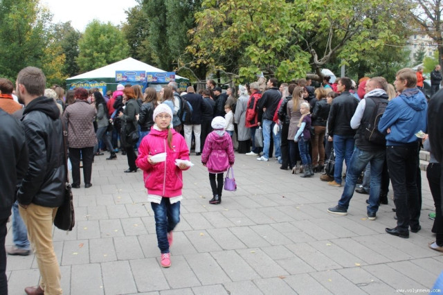 Організатори повідомили, що збираються роздати 1000 безплатних порцій вареників від спонсорів ТМ «Левада». Черга охочих скуштувати славетну українську національну страву не зменшувалася впродовж декількох годин.