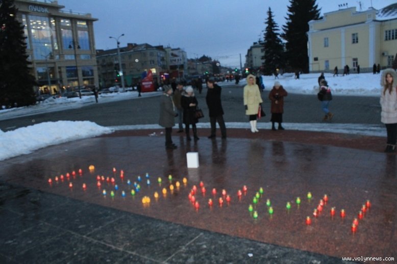 Так, на Театральному майдані обласного центру з’явився напис «Надія Є!», який волонтери виклали запаленими лампадками.