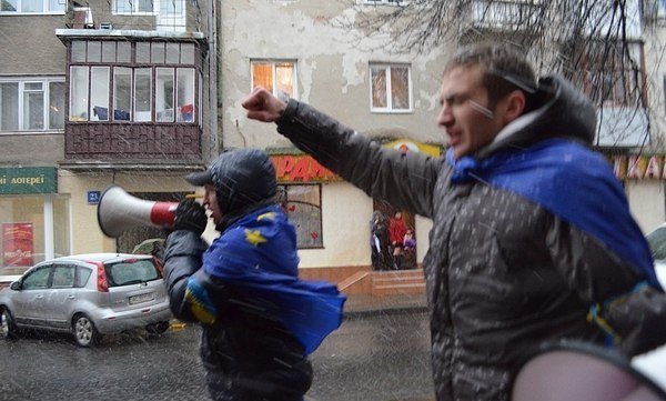 Лучани-активісти Роман Перванчук та Микола Собуцький вийшли на сцену столичного Євромайдану.
