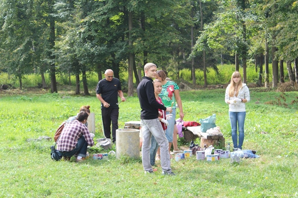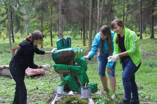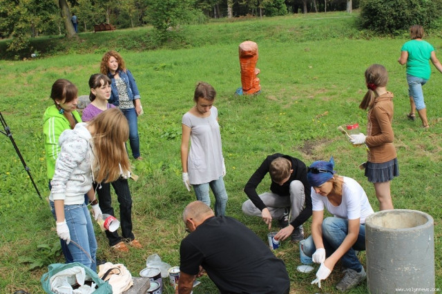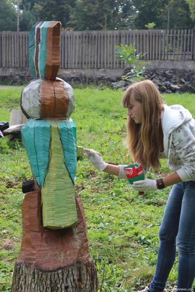 Фронт робіт кожен обирав собі сам: наприклад, розмальовувати клишоногого, який охороняє вхід на центральну алею, взялась пара молодих людей.