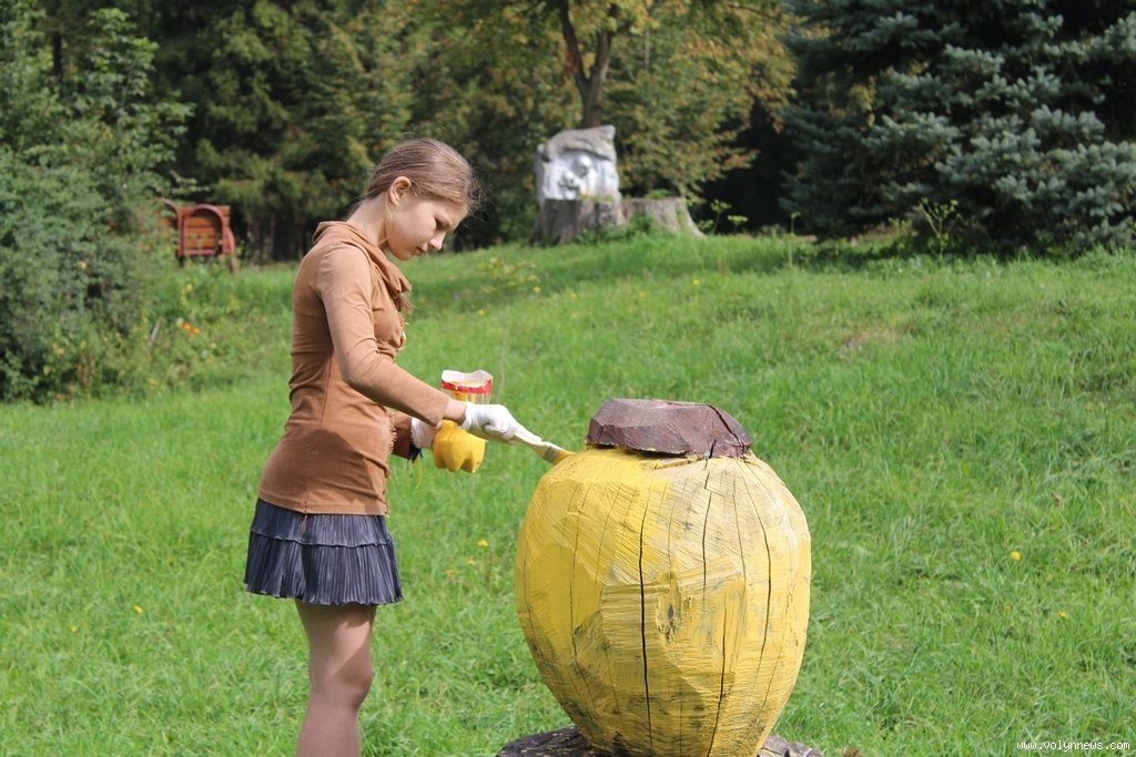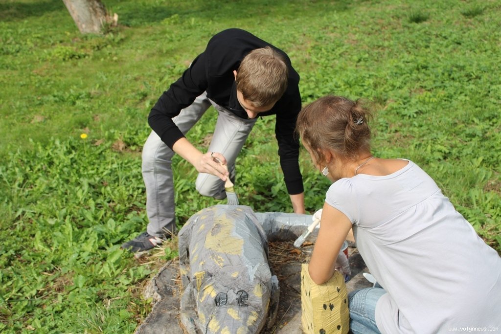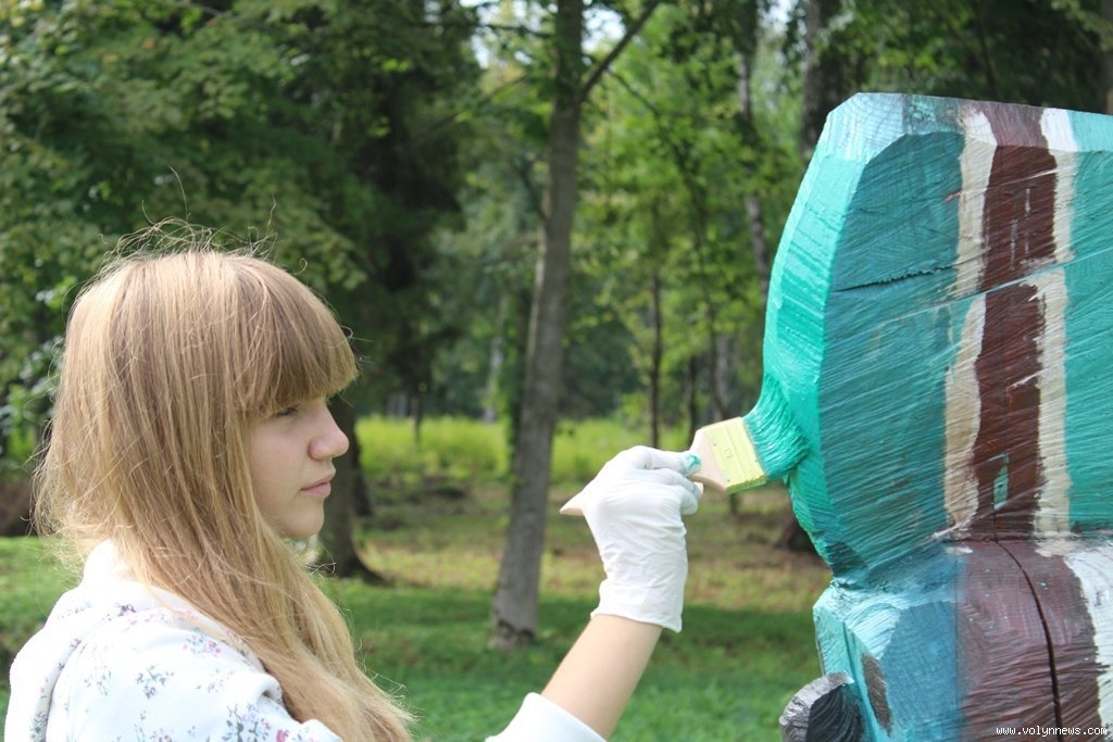 Так, сьогодні вранці, поблизу Ротонди ініціативних молодих людей зібрали організатори заходу – Волинський туристичний клуб «Ми». Акція проводиться вже вдруге: сьогодні фарбу просто оновлять. А торік фігури звірів, які власними руками вирізав комунальний працівник цього парку Олексій Литвин, активісти фарбували цілих два дні. Але за рік фарба посохла та почала лущитись – а значить, прийшов час її освіжити.