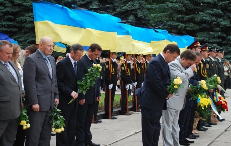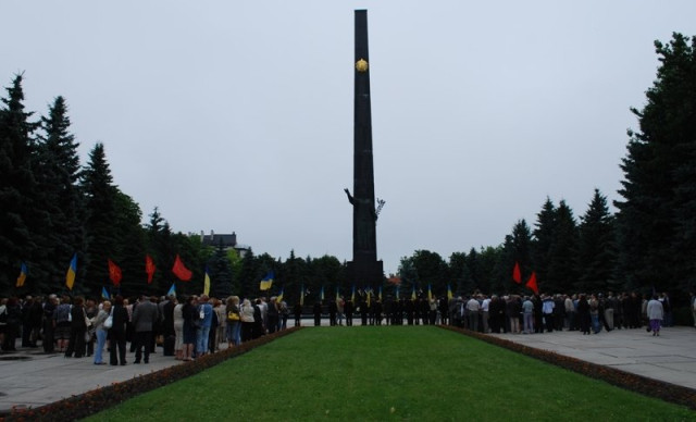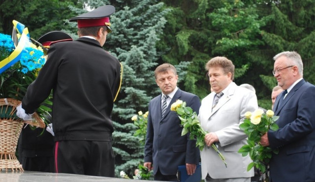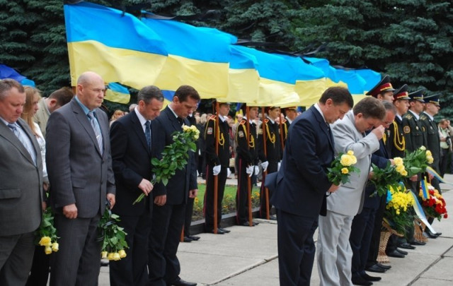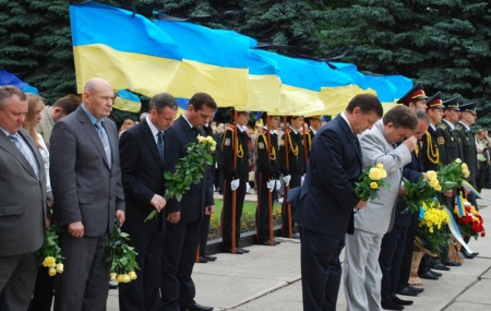 Подія тривала півгодини і завершилася покладанням квітів до обелісків і стел меморіалу.