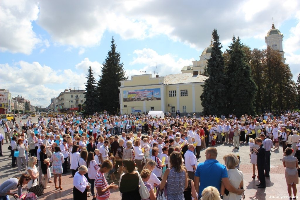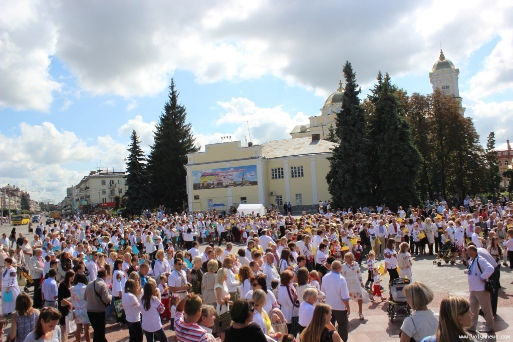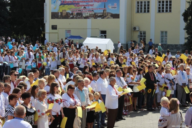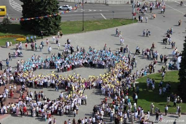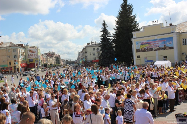 Акція розпочалася на Театральному майдані у Луцьку 24 серпня. Її учасники, вбрані у вишиванки, за допомогою синіх та жовтих аркушів паперу сформували контур України.