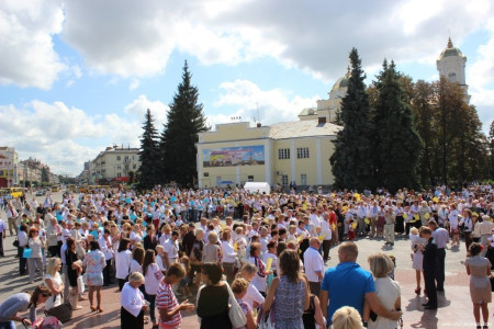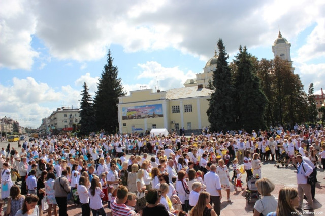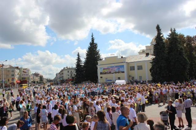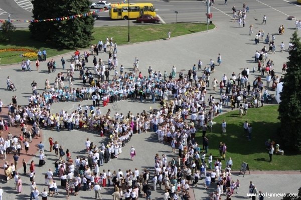 Карту України сформували сотні лучан, які долучилися до громадської акції «Українська вишиванка».
