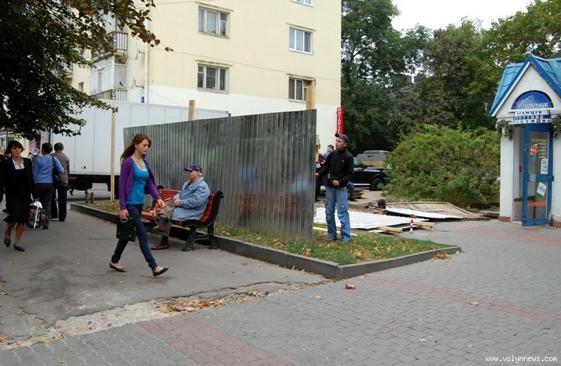 У центрі Луцька знову розгорівся конфлікт навколо будівництва торгового павільйону та критої зупинки транспорту на центральному проспекті.
