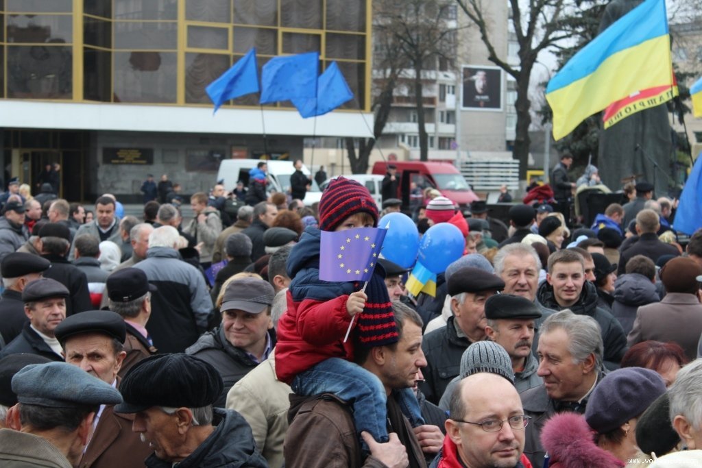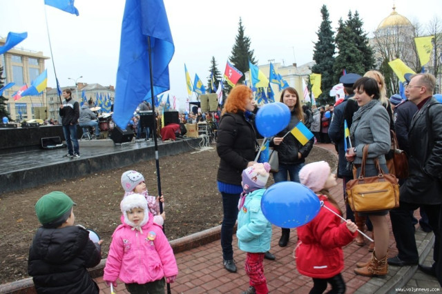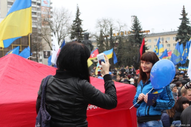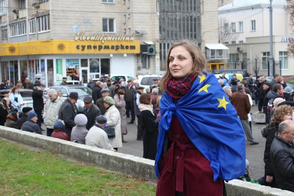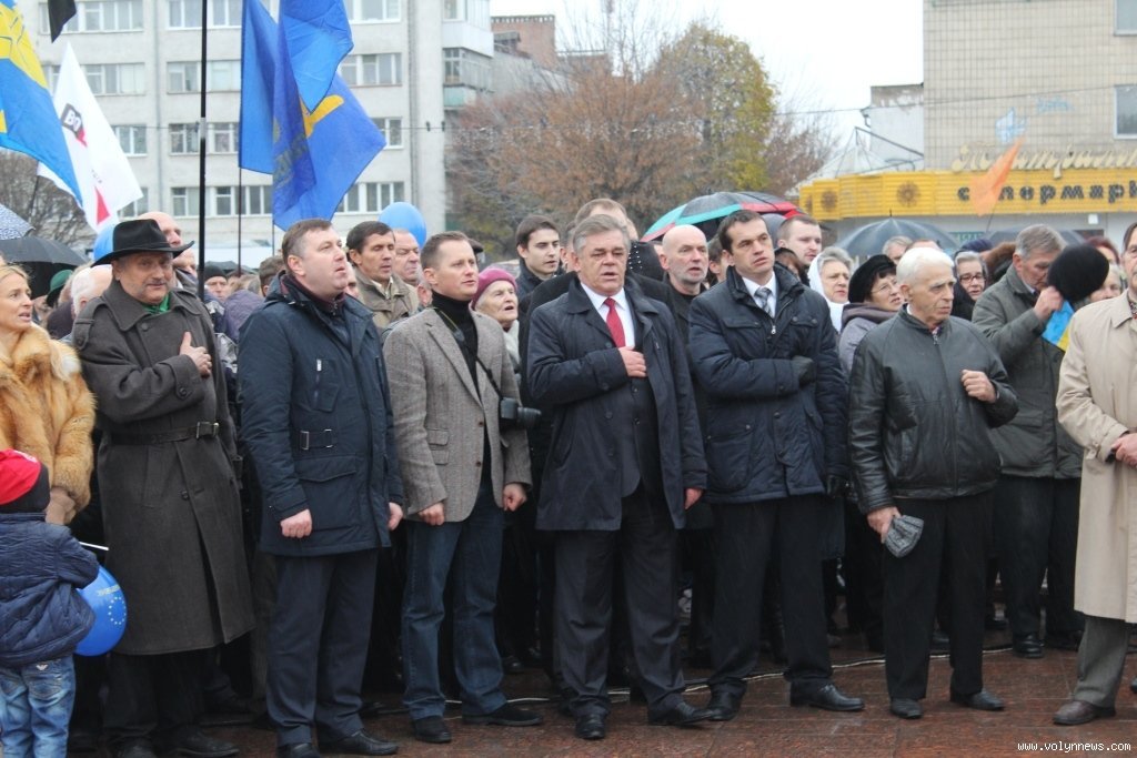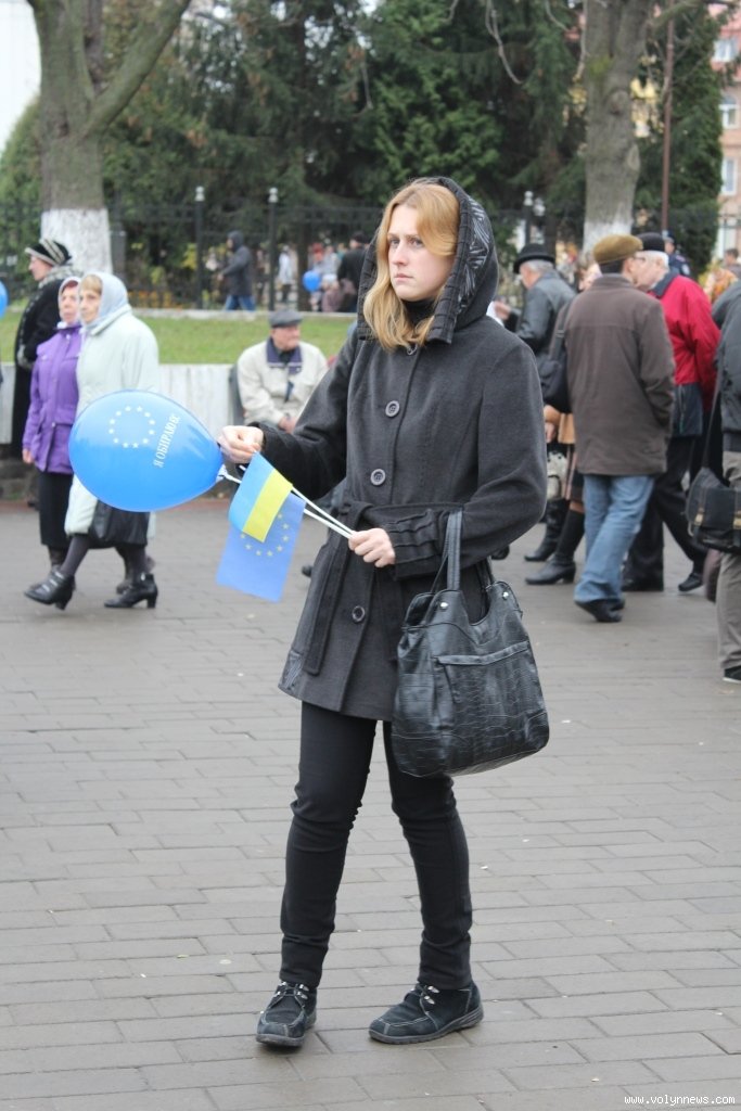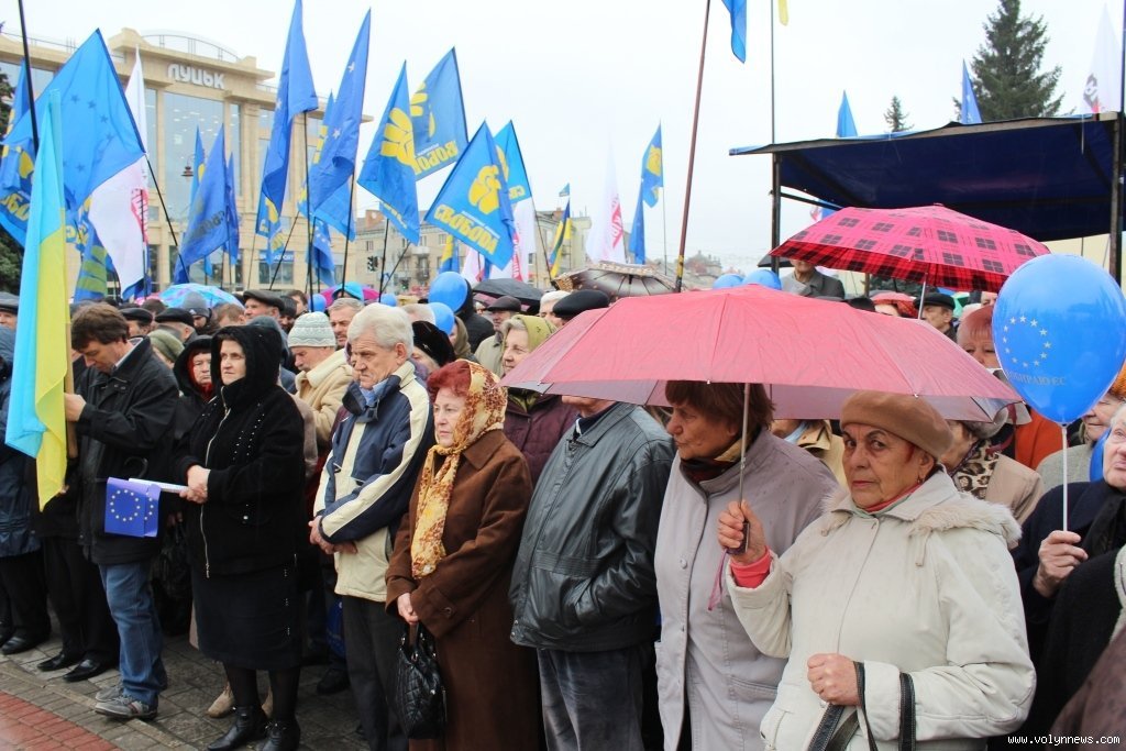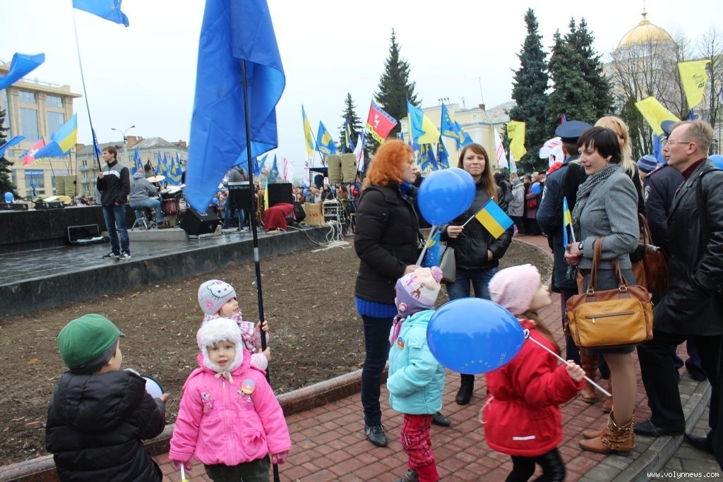 Мітинг відбувся 24 листопада. Тисячі лучан прийшли висловити протест проти згортання політики євроінтеграції. Багато хто з присутніх ставив підписи на підтримку європейського курсу України, які збирали у наметовому містечку. Так, після завершення мітингу назбиралося приблизно 4 тисячі підписів. Також роздавали символіку – повітряні кульки у кольорах прапора Європейського Союзу та прапорці України та ЄС.