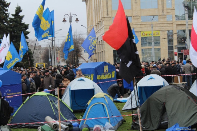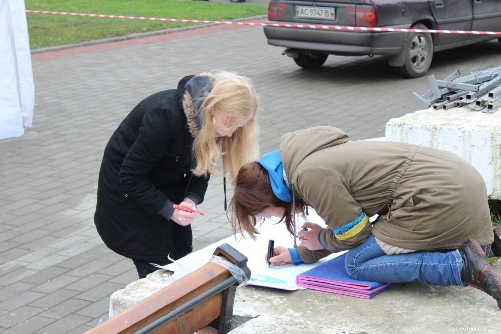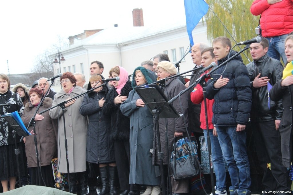 До учасників мітингу зверталися активісти луцького Євромайдану, які впродовж декількох днів мешкають у наметовому містечку, із закликом підтримувати безстрокову акцію.