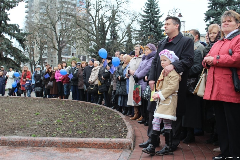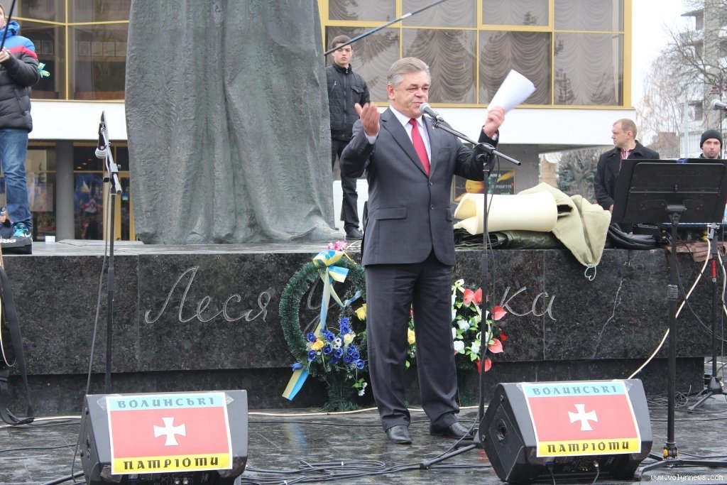 Першим з промовців виступив депутат Луцької міської ради Василь Гриб, який продекламував рядки з поезії великих українців Івана Франка та Тараса Шевченка.