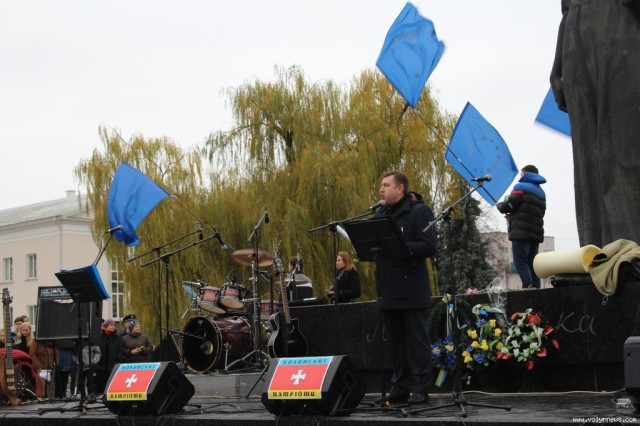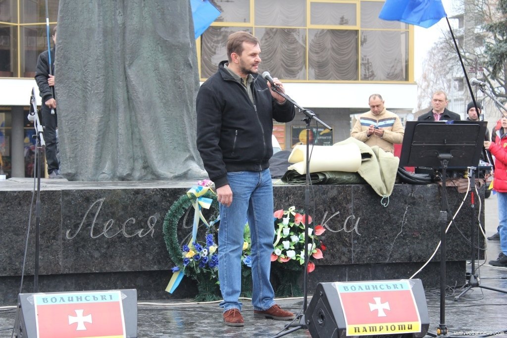 Наступним виступив депутат Луцької міської ради Олександр Плісецький, який зазначив, що частина його однопартійців нині у Києві, однак луцький Майдан не менш важливий, ніж Майдан у столиці.