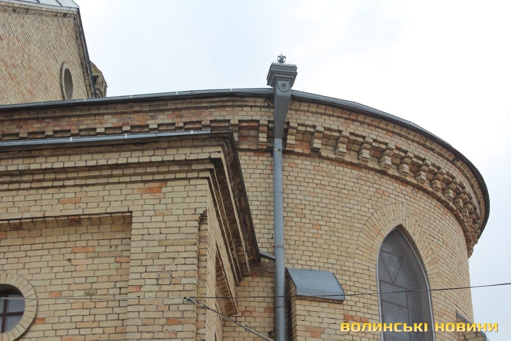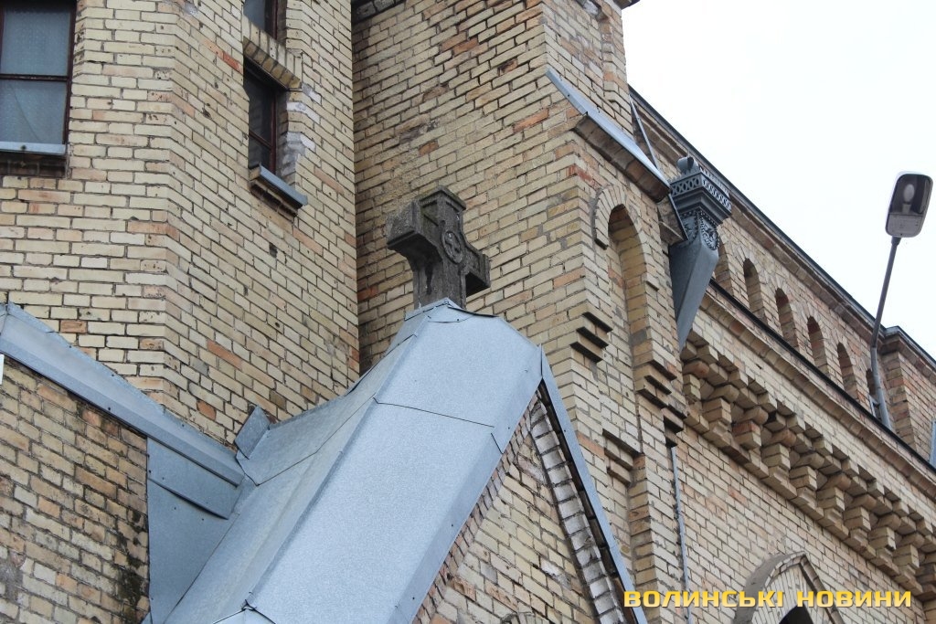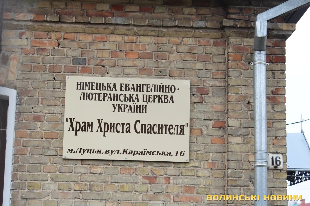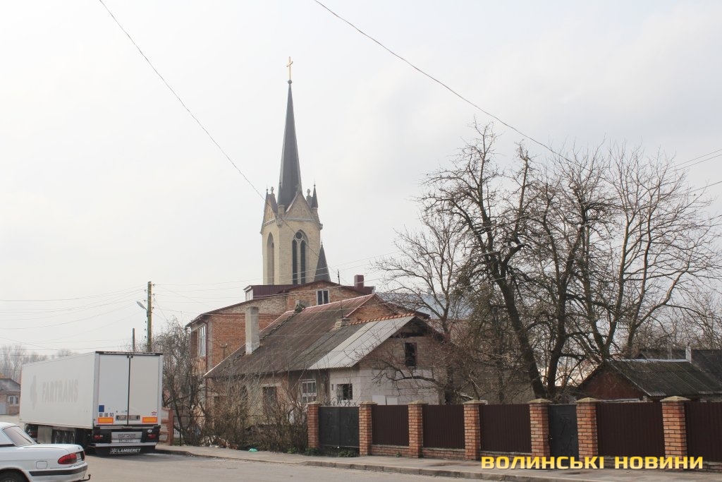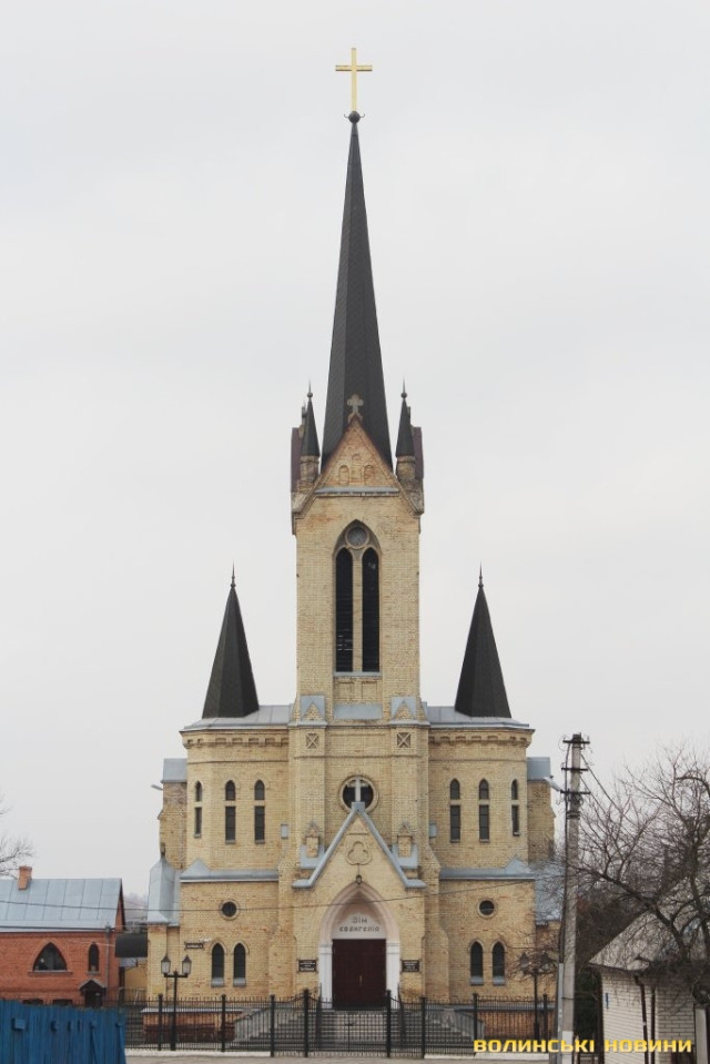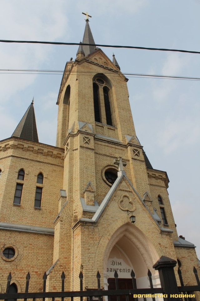 Лютеранська кірха побудована 1906 року як храм лютеранської громади міста за проектом архітектора Християна Бойтельспахера на місці знищеного пожежею у 1845 році костелу кармелітів. Кірха стала одним з головних храмів німецьких колоністів Волині, проте, у зв’язку із подіями другої світової війни, занепала. Високий шпиль кірхи був знищений під час буревію у 1960 році. За радянських часів тут було сховище документів Волинського обласного державного архіву. Реставрація храму розпочалася у 1991 році. З 1994 року кірху використовує як Дім Євангелія громада євангельських християн-баптистів. В колишньому будинку пастора поряд із кірхою діє німецьке товариство.