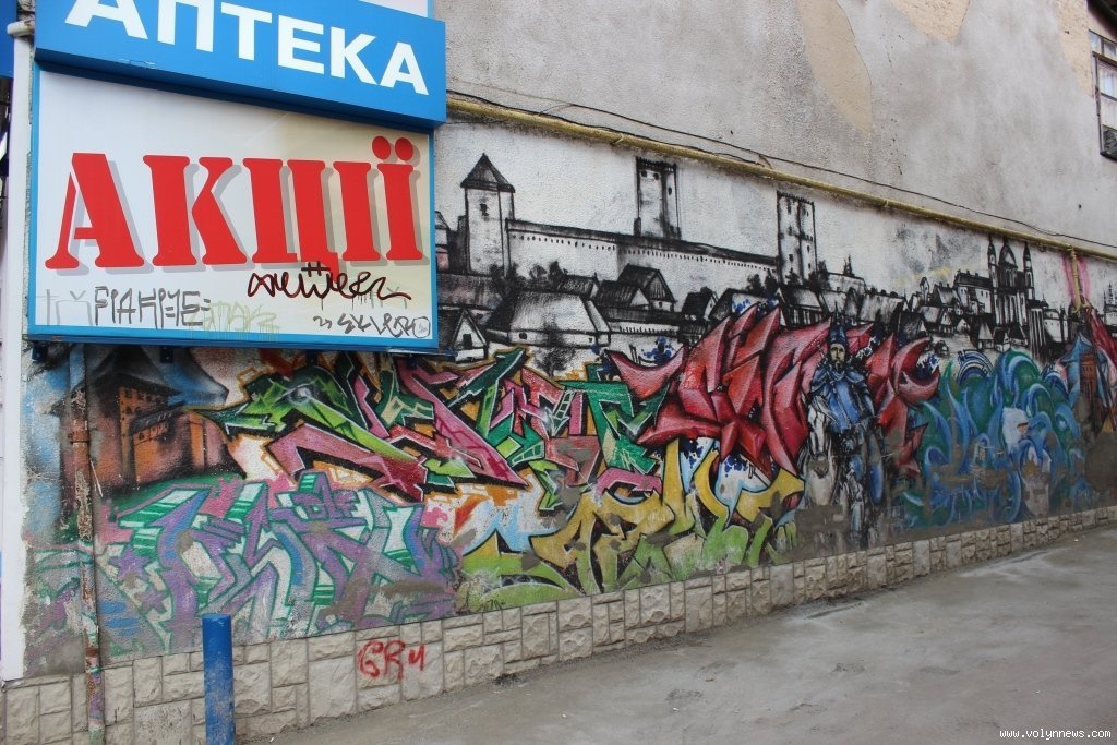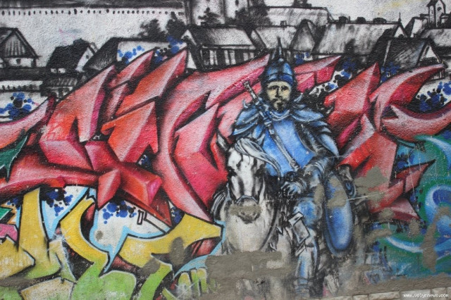 Стіну одного з будинків впродовж багатьох років прикрашає масштабне графіті із зображенням панорами Старого Міста.
