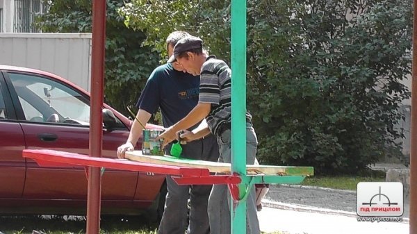 Працівники місцевого ЖКП розпочали фарбувати лавки та підстригати кущів.